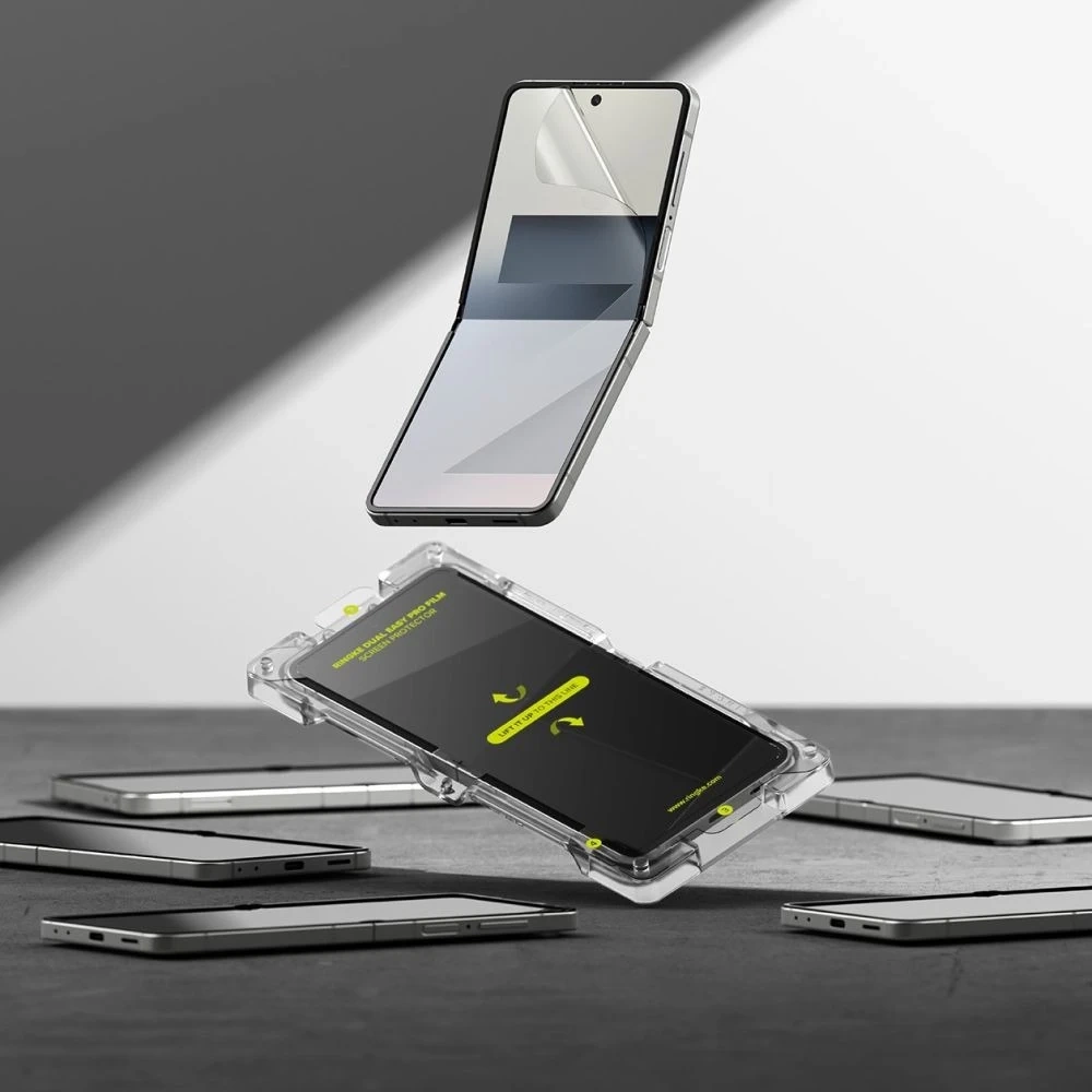 • Folia ochronna Ringke Dual Easy Pro do Galaxy Z Flip 7 to idealne zabezpieczenie ekranu wewnętrznego. Samoregenerująca się warstwa EPU, ramka montażowa i ultracienka konstrukcja zapewniają komfort użytkowania i łatwą instalację.