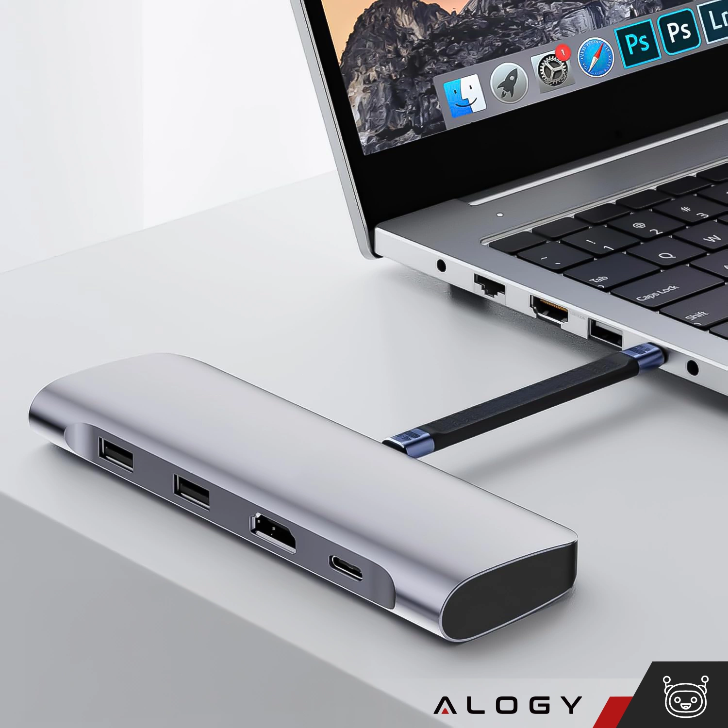 HUB splitter Alogy Adaptér pre počítačový notebook s USB-C na 3x USB-A 2.0 1x USB-A 3.0 sivý