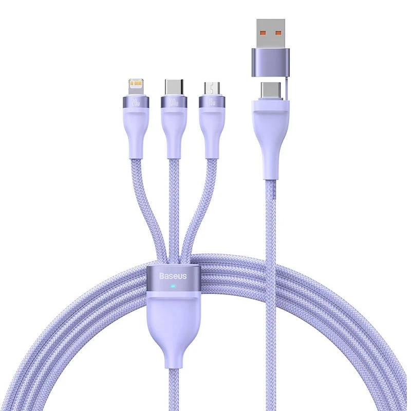 Kábel USB 3w1 Baseus Flash Series 2, USB-C micro USB Lightning, 100 W, 1,2 m (fioletovy)
