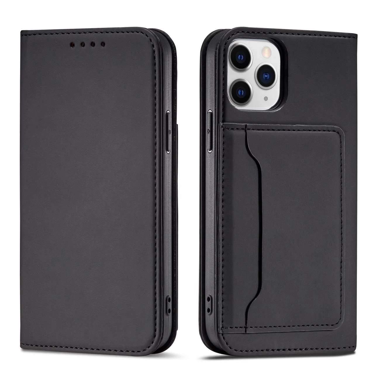 Magnet Card Case pre iPhone 12 obal na karty peňaženka stojan na karty čierny