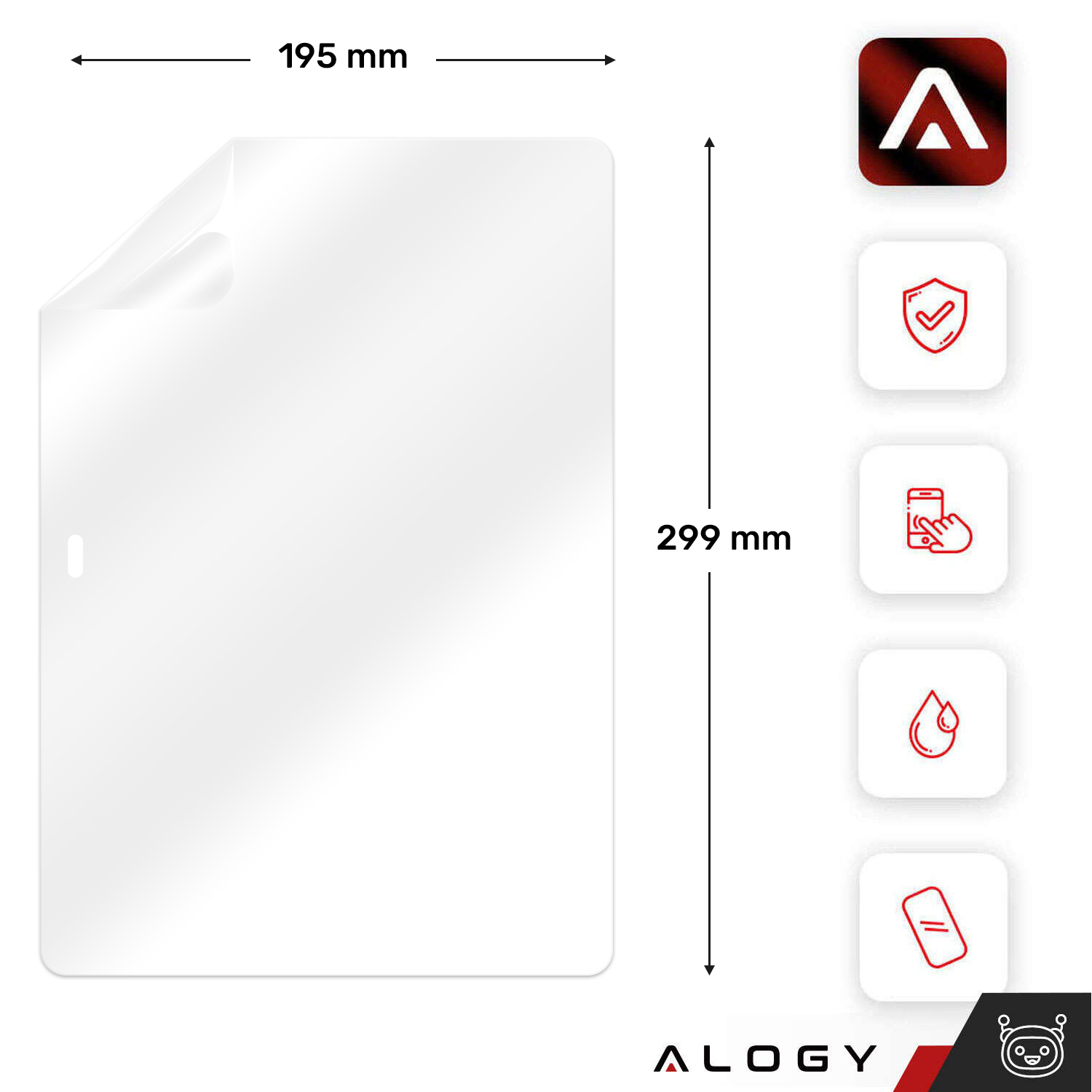 - Sada obsahuje: 1x ochranná fólia Alogy, 1x mokrá handrička, 1x suchá handrička, 1x sada polohovacích nálepiek a nálepky na odstránenie prachu, 1x stierka