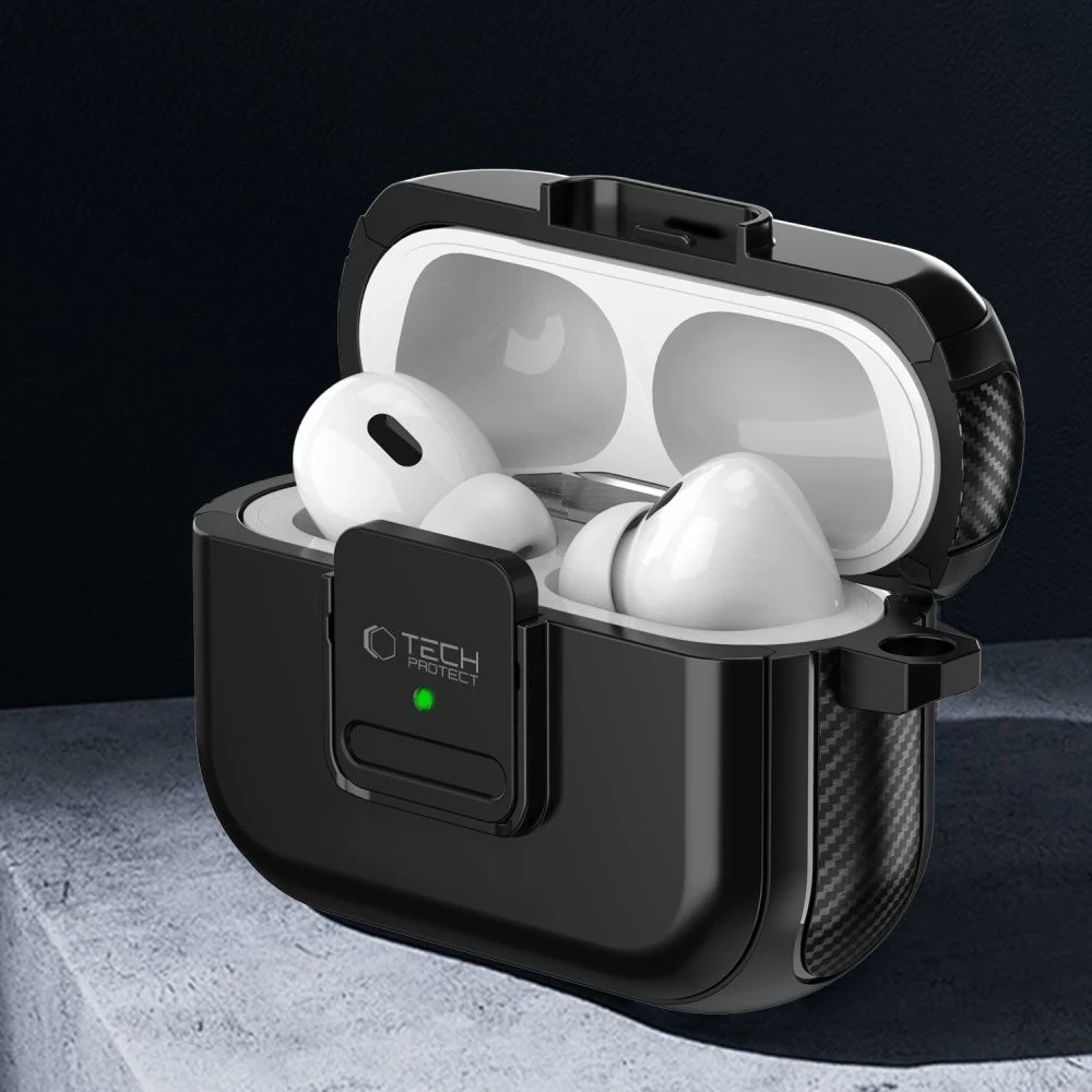 • Ochranné puzdro na slúchadlá Defender Hook MagSafe pre Apple Airpods Pro 1 / 2 ochráni vaše zariadenie pred poškriabaním, prachom a odtlačkami prstov. Vyrobené z TPU a PC, s modernou uhlíkovou úpravou, poskytuje funkčnosť a rýchly prístup k portom.