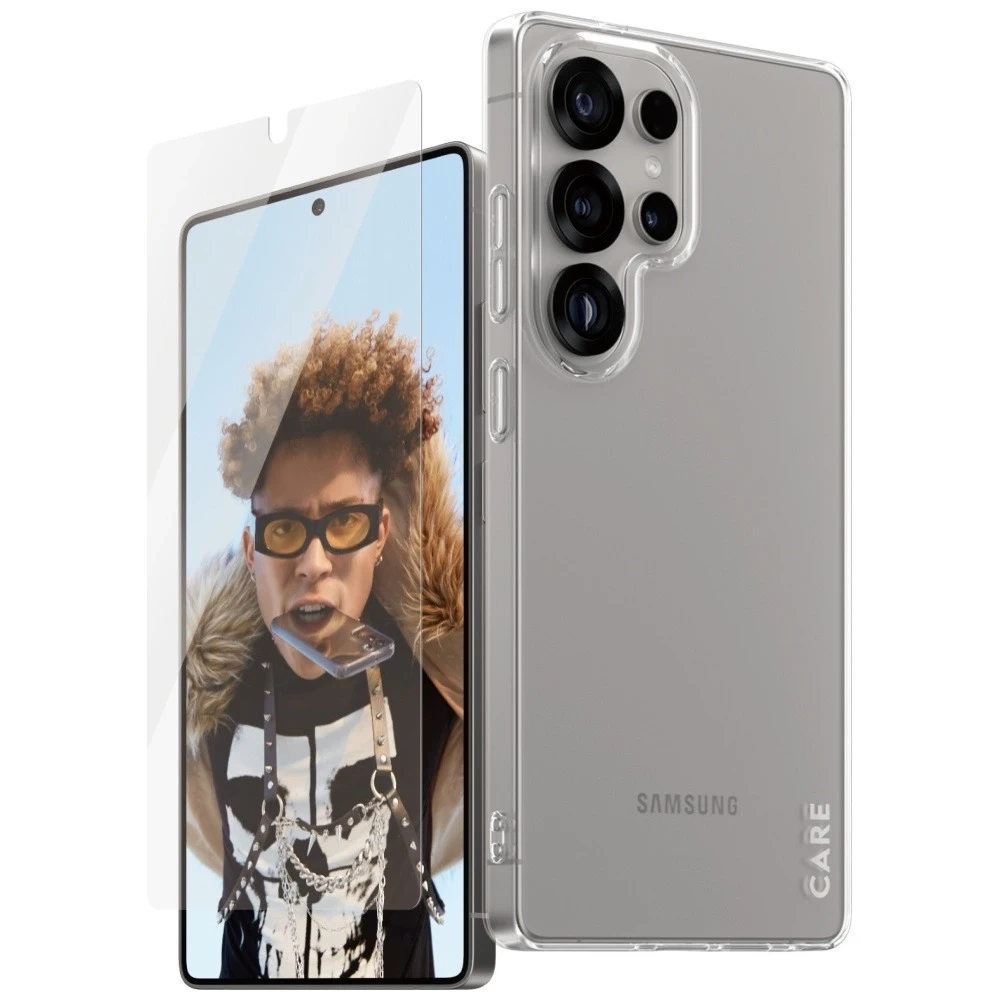 Ochranná sada CARE by PanzerGlass 2v1 kombinuje funkčnosť a ekológiu a poskytuje spoľahlivú ochranu pre Samsung Galaxy S25 Ultra. Sada obsahuje priehľadné puzdro vyrobené z recyklovaného TPU a tvrdeného skla, ktoré účinne chráni obrazovku pred poškodením.