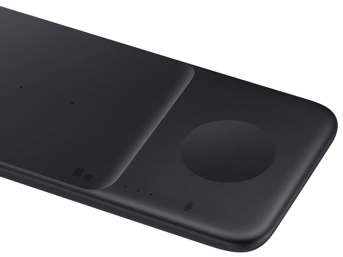 Pomocou bezdrôtovej nabíjačky Samsung môžete súčasne nabíjať až tri kompatibilné zariadenia . Na ľavej strane môžete nabíjať dva smartfóny alebo smartfón a slúchadlá Galaxy Buds. Pravá strana je venovaná výhradne hodinkám Galaxy Watch a vstavaný magnet umiestni vaše inteligentné hodinky do správnej polohy, keď ich položíte.