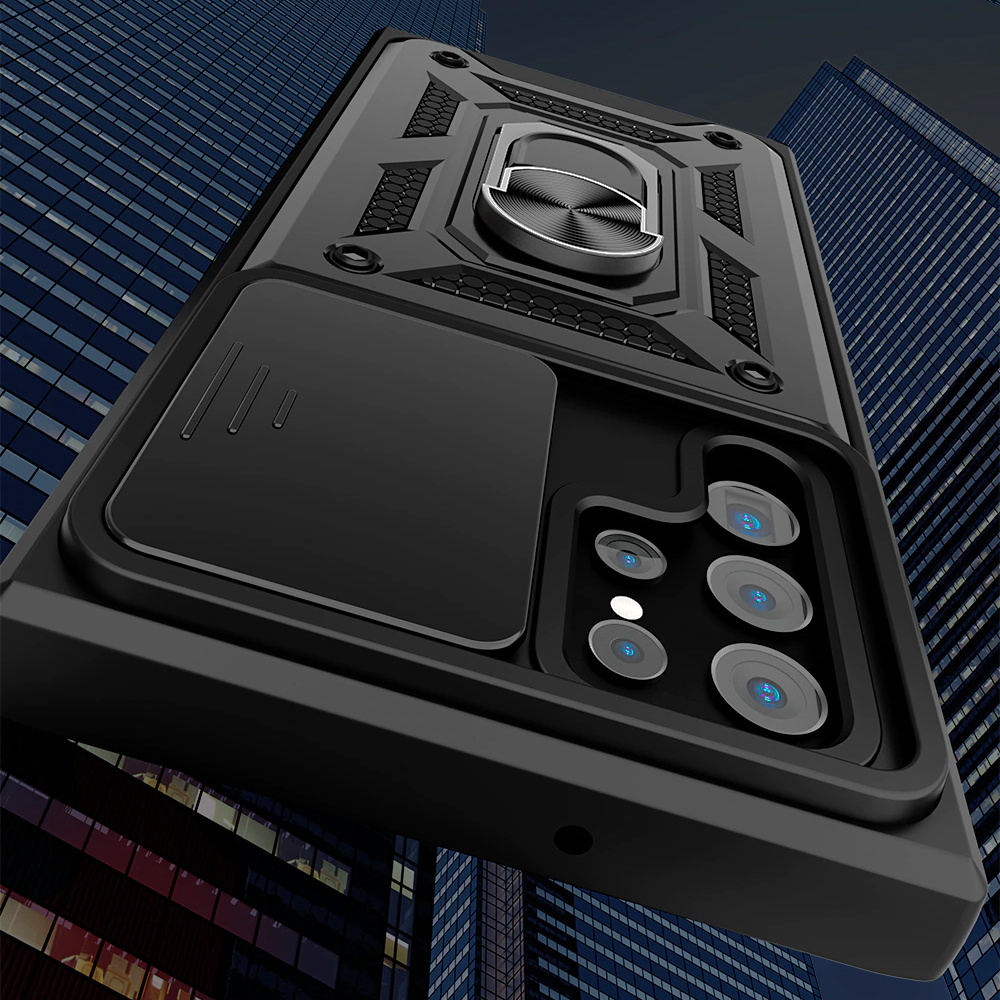 Pancierové puzdro s krytom fotoaparátu Alogy Camshield Stand Ring pre Samsung Galaxy S22 Ultra
