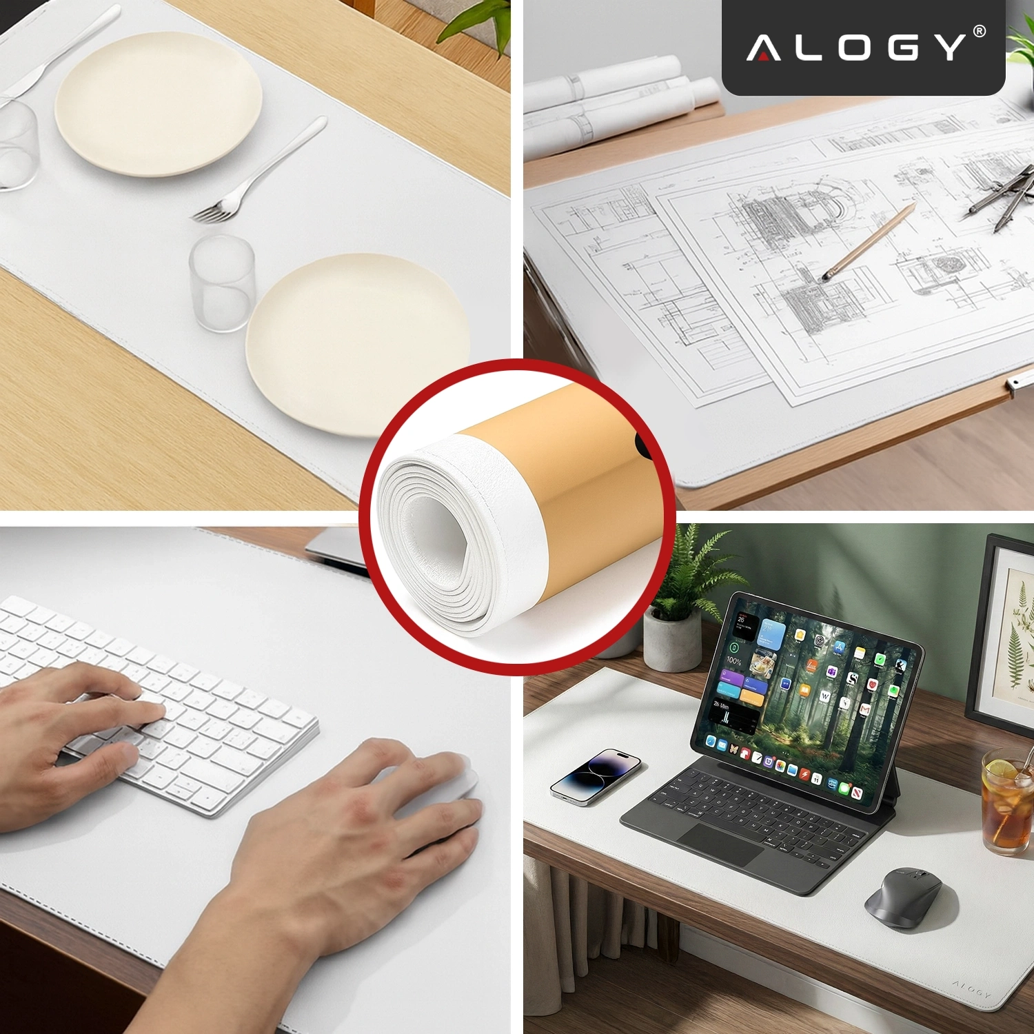 ▶️ Podložka na stôl 90x45 cm Alogy WorkMat™ PU koža biela - Vždy čistá a estetická doska stola!