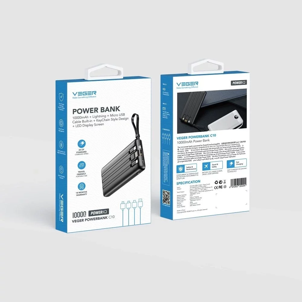 Powerbanka Veger C10 s kapacitou 10 000 mAH je zárukou rýchleho nabíjania kdekoľvek a kedykoľvek.