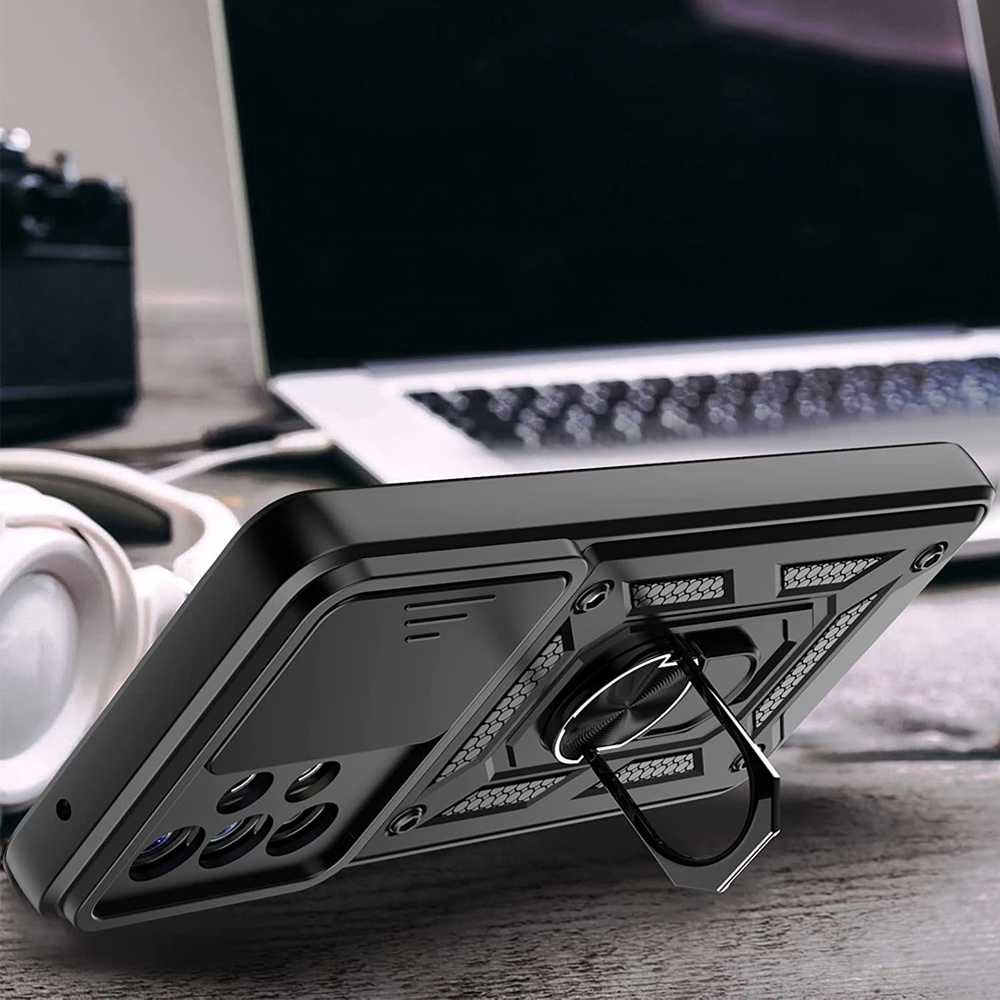 Puzdro Alogy Camshield Stand Ring s krytom na fotoaparát pre Samsung Galaxy A73 / A73 5G Glass