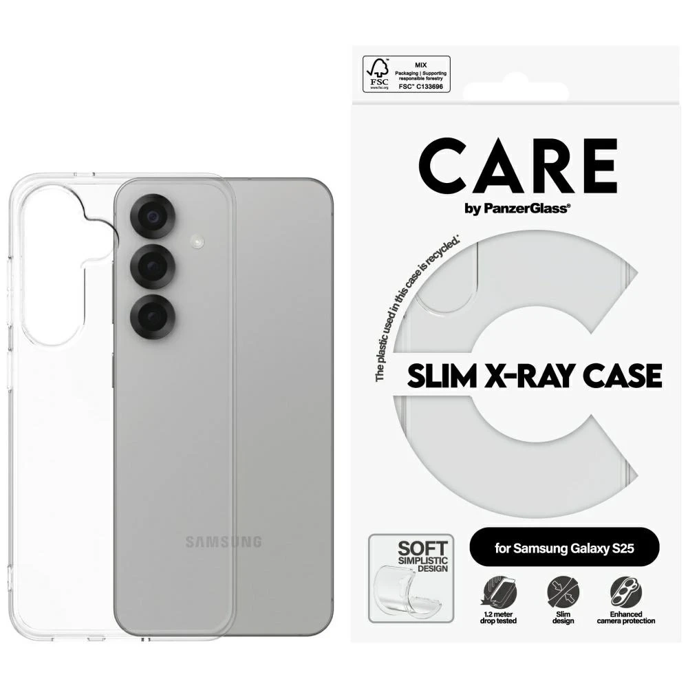 Puzdro CARE by PanzerGlass Fashion X-Ray pre Samsung Galaxy S25 je dokonalou kombináciou ekológie, funkčnosti a estetiky. Vyrobené zo 100 % recyklovaného TPU poskytuje účinnú ochranu vášho smartfónu a zároveň minimalizuje jeho vplyv na životné prostredie. Priehľadné puzdro zdôrazňuje originálny vzhľad zariadenia bez toho, aby zakrývalo jeho štýlový dizajn.