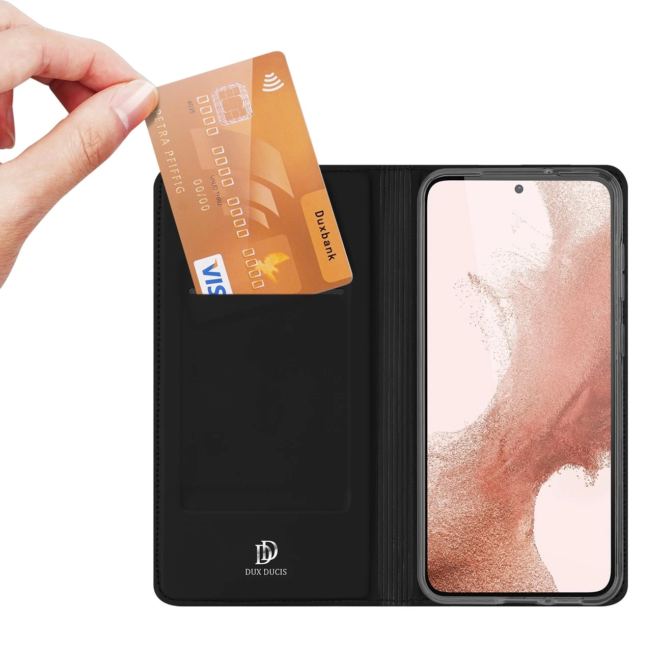 • Puzdro na telefón Dux Ducis Skin Pro pre Samsung Galaxy S23 flip cover stojan na peňaženku je štýlové puzdro s vnútornou vložkou na telefón z pružného TPU a vonkajšou chlopňou z koženky.