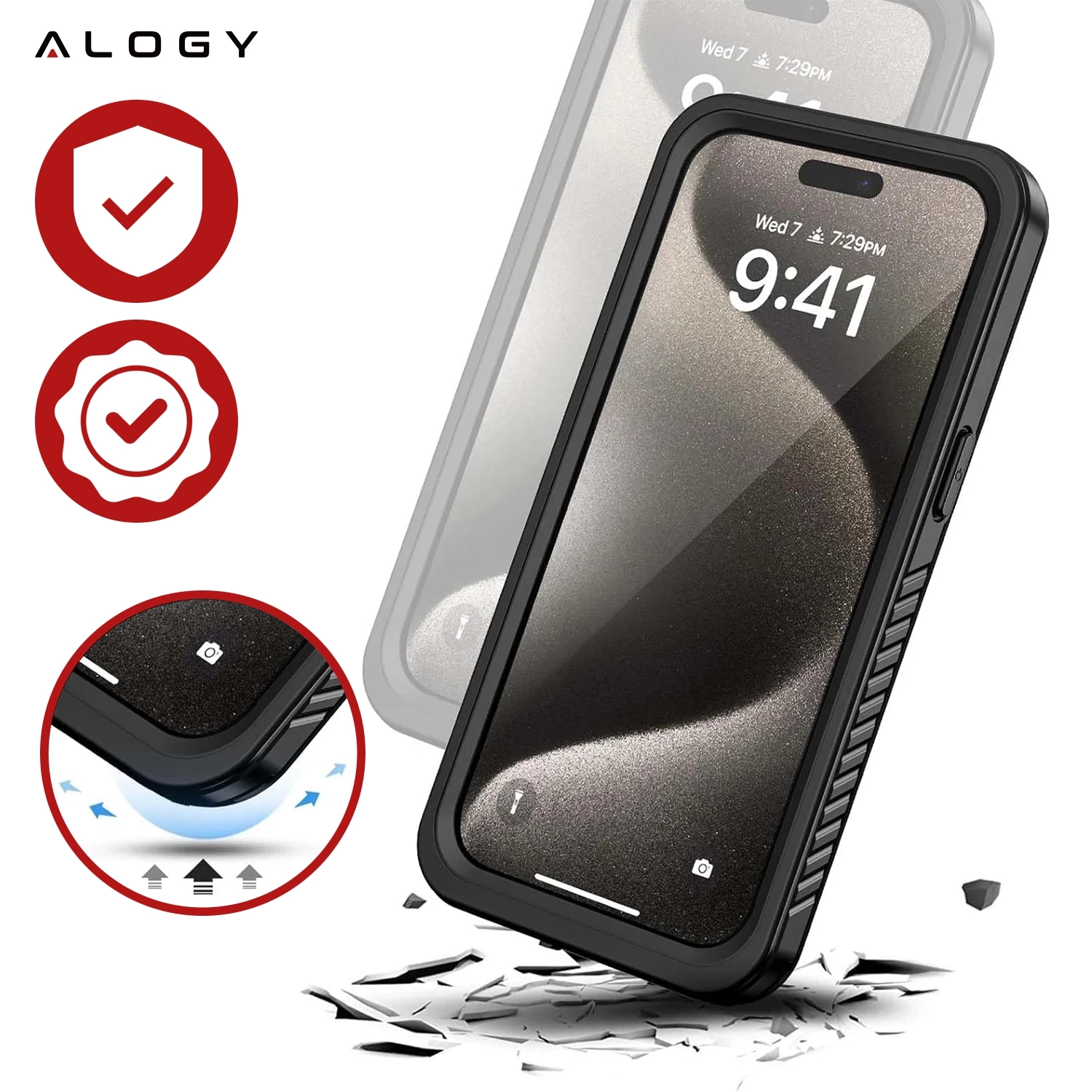 Okrem ochrany proti vode, puzdro Alogy dokonale absorbuje pády ! Dizajn obalu chráni telefón pred rozbitím a sklo integrované s puzdrom chráni displej pred poškriabaním a poškodením.
