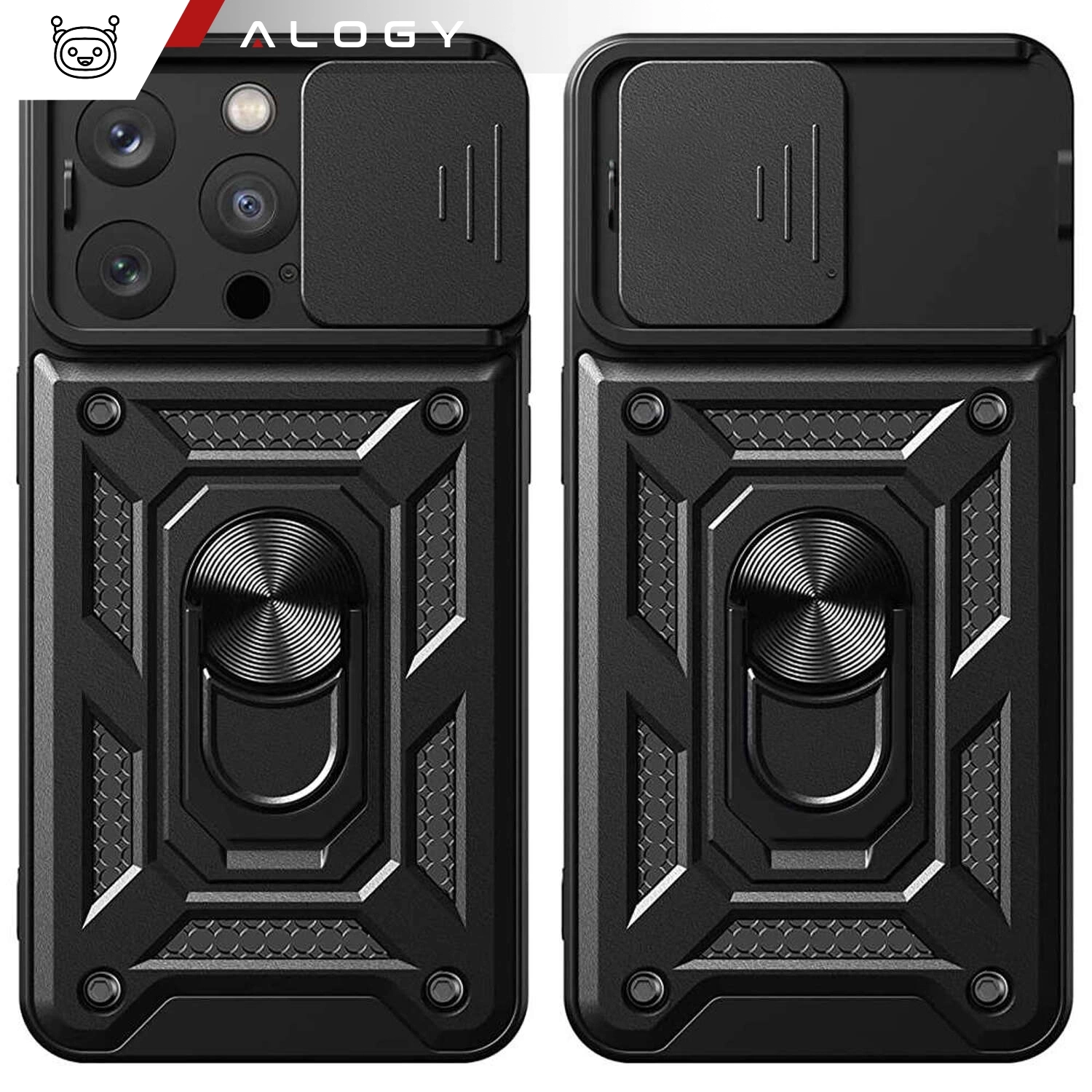Puzdro pre Apple iPhone 16 Pro pancierové Slide Case Ring puzdro ochrana fotoaparátu Camshield Alogy čierne