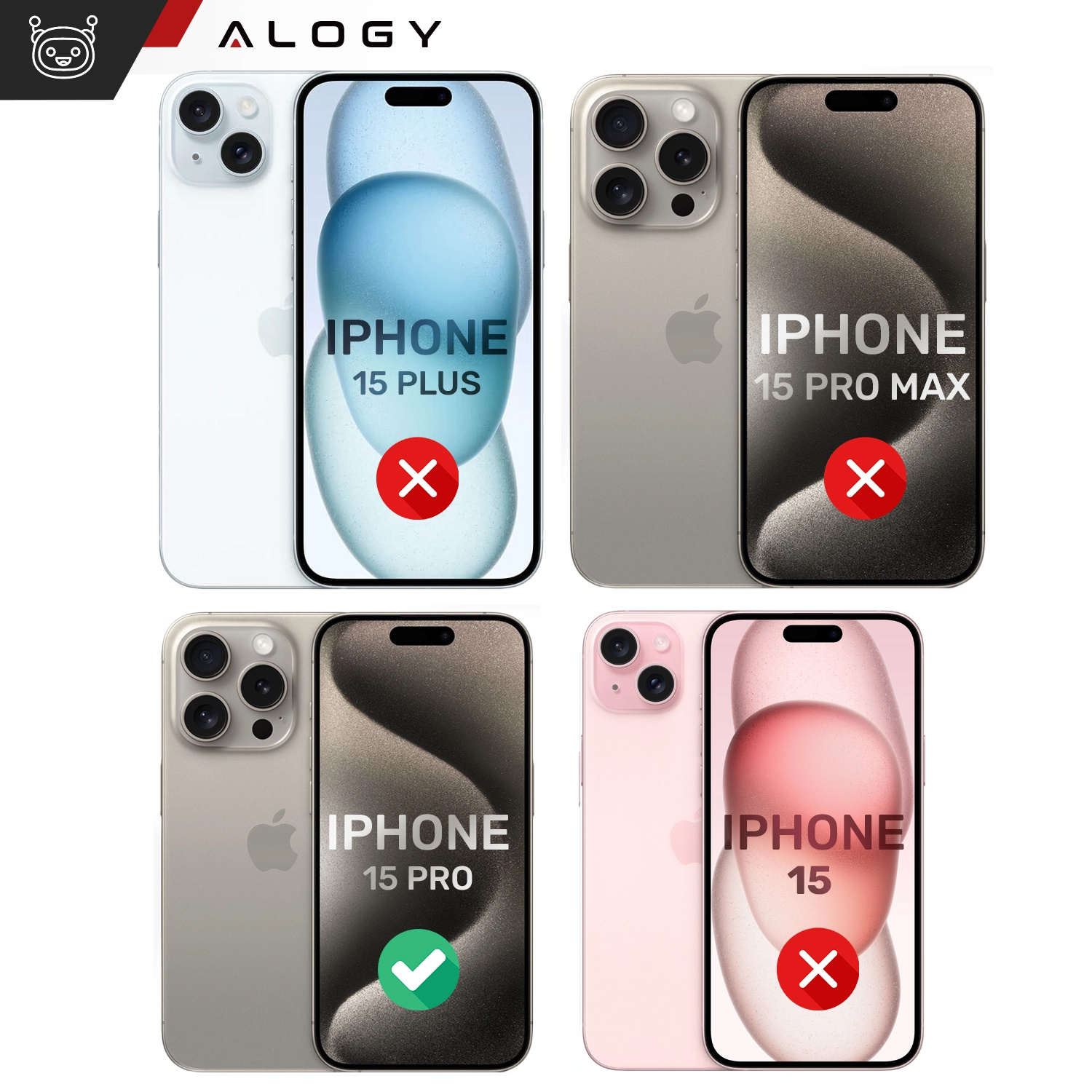 Súprava 6in1 od Alogy, pozostávajúca z 2x ochranných sklo na obrazovku, 2x sklo na šošovku, 1x Krúžok lepený na zadnom puzdre a puzdre pre iPhone 15 Pro je to dokonalý partner pre každého
