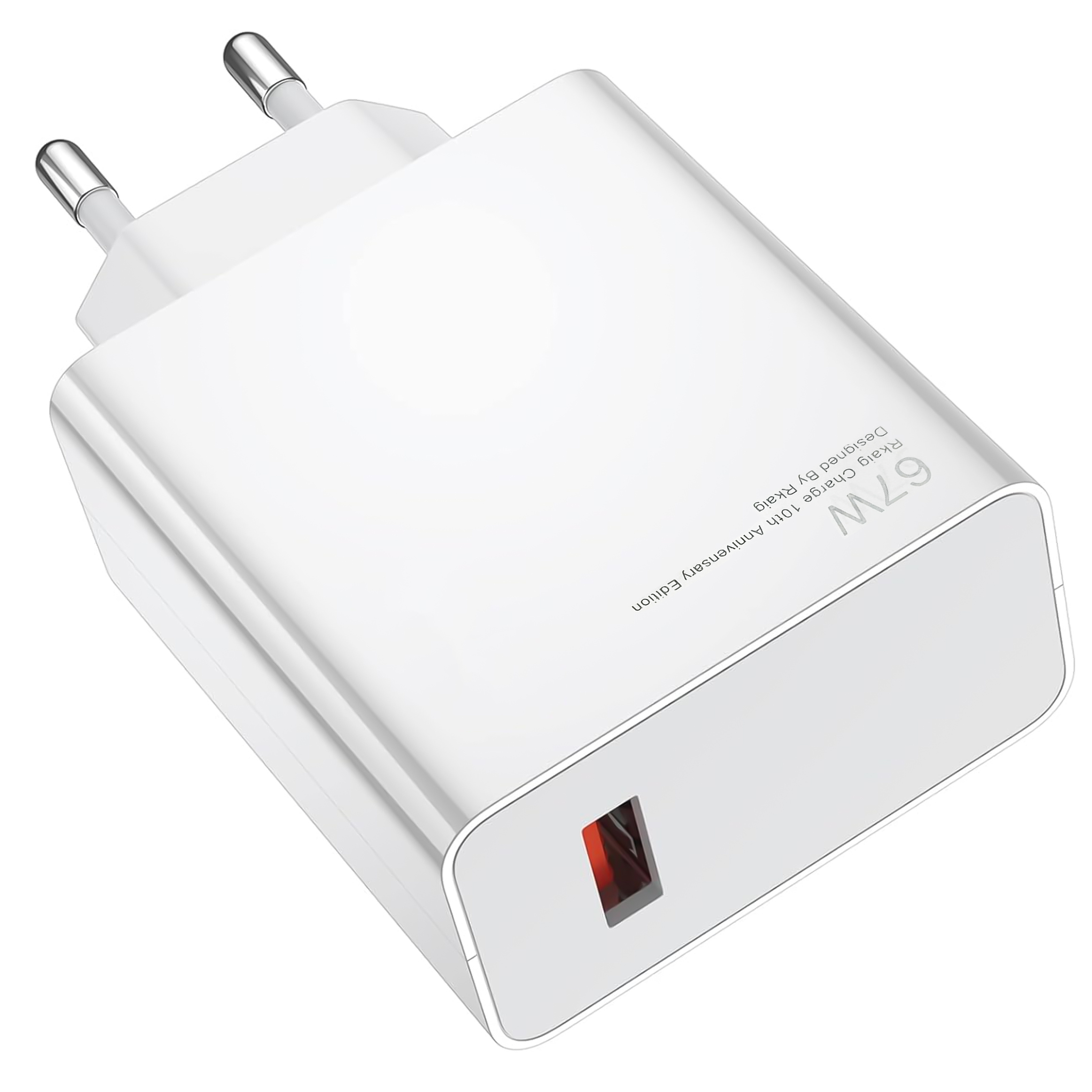 Najdôležitejšie vlastnosti nástennej nabíjačky Alogy sú jej výkon 67W, materiál (PC), kompatibilita so zariadeniami iOS a Android, certifikáty EAC a CE a podpora protokolov rýchleho nabíjania.