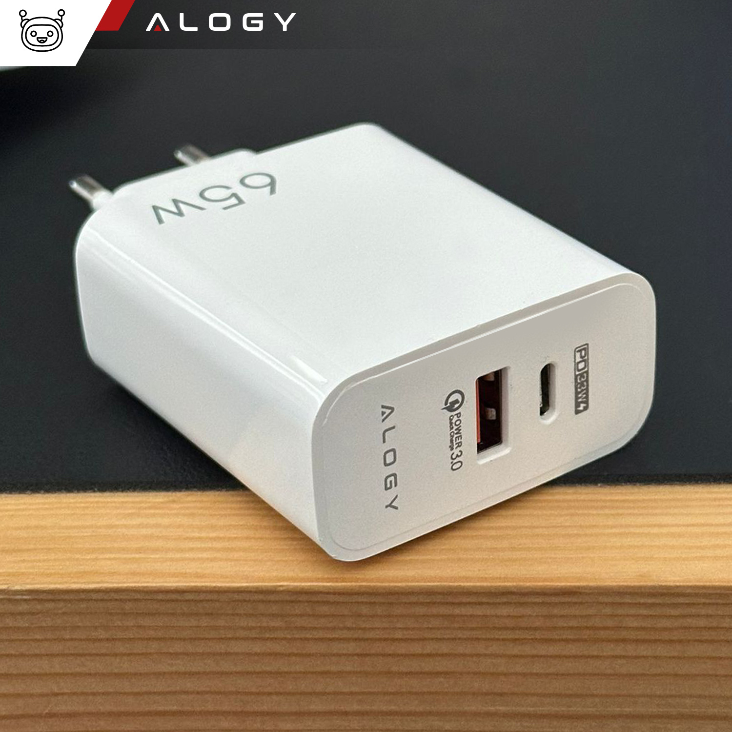 Sieťová nabíjačka od Alogy má až 2 nabíjacie porty - USB-A a USB-C typu C, vďaka čomu môžeme nabíjať až dve zariadenia súčasne.