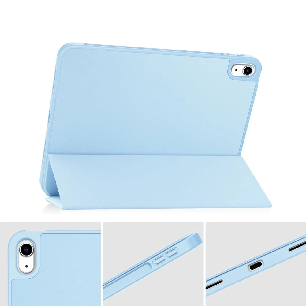Vďaka použitiu plisovaného krytu na prednej strane krytu získame ochranu displeja a vďaka technológii budenia a spánku zariadenia môžeme zabezpečiť o niečo dlhšiu výdrž batérie. Puzdro je možné použiť aj ako stojan pre pohodlnejšie používanie zariadenia.