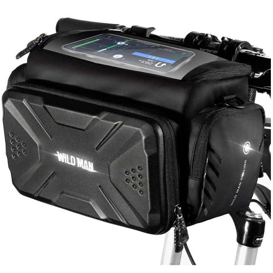 Vodotesné puzdro Wildman Bag zo série GS6 je kvalitná štvordielna taška na bicykel, uzatvárateľná na zips. Bol vyrobený z vystuženého PU plastu. Montáž je možná vďaka špeciálnej konštrukcii pozostávajúcej z čelenky namontovanej na volante nášho vozidla a klipu na taške.