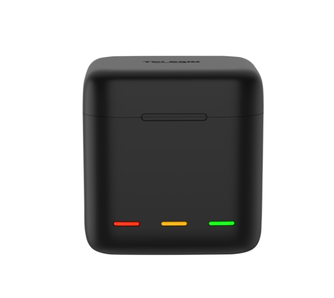 Pohodlné skladovanie a nabíjanie až 3 batérií pre GoPro Hero 9 a Hero 10 súčasne? Teraz je to možné! Prenosná 3-kanálová nabíjačka Telesin GP-BNC-902 prekvapí účinnosťou a zaistí bezpečnosť používania. Umožňuje vám nabiť všetky 3 batérie len za 2,5 hodiny! Vďaka vylepšenému dizajnu sa jednoducho a pohodlne používa a zároveň ľahko prenáša. Informáciu o stave nabíjania poskytujú 3 farebné svetelné indikátory. Sada obsahuje aj 3 batérie pre GoPro Hero od Telesin.