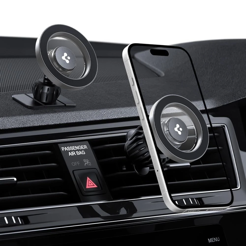 Uchwyt samochodowy Spigen MFT13 w kolorze Silver to idealne rozwiązanie dla kierowców ceniących wygodę, bezpieczeństwo i szybki dostęp do smartfona. Kompatybilność z technologią MagSafe sprawia, że mocowanie telefonu odbywa się błyskawicznie — silne magnesy klasy N52 natychmiast przyciągają urządzenie i utrzymują je stabilnie przez całą jazdę. Smartfon nie przesuwa się nawet podczas dynamicznych manewrów lub jazdy po nierównym terenie.
