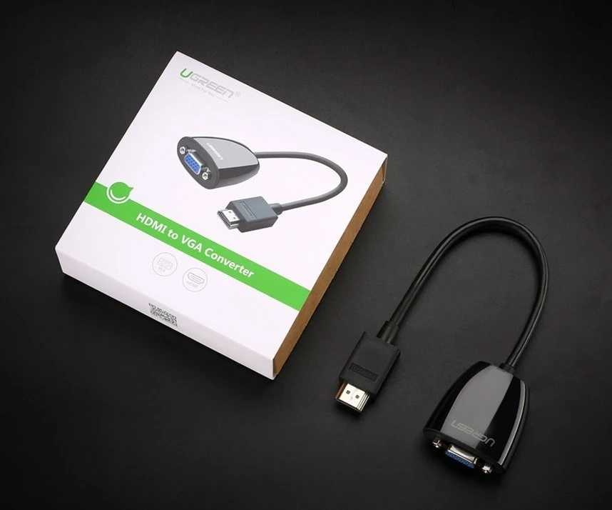 Ugreen jednosmerný adaptér, ktorý sa používa na prevod digitálneho signálu prichádzajúceho z portu HDMI na analógový do portu VGA. Umožňuje pripojiť napríklad monitor alebo projektor s konektorom VGA k počítaču s konektorom HDMI.