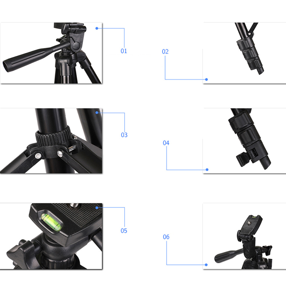 Statív má montážnu skrutku - 1/4 palcový závit, na ktorý môžete priamo priskrutkovať vybavenie, vrátane: GoPro kamery, mini kamera, kamera. Sada obsahuje držiak na telefón a na športové kamery.