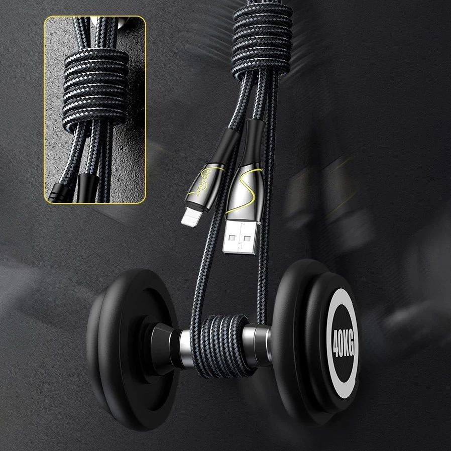 Tento kábel okamžite nabije batériu vášho iPhone - je kompatibilný so zariadeniami Apple s konektorom Lightning. Zaručuje stabilnú a spoľahlivú prevádzku po dlhú dobu, ako aj vysokú účinnosť. Je vyrobený z kvalitných materiálov, je chránený proti poškodeniu a nedeformuje sa. Batéria sa neprehrieva a neničí. Môžu za to detaily ako gumené ochrany, ktoré chránia vstupy proti poškriabaniu a inému mechanickému poškodeniu