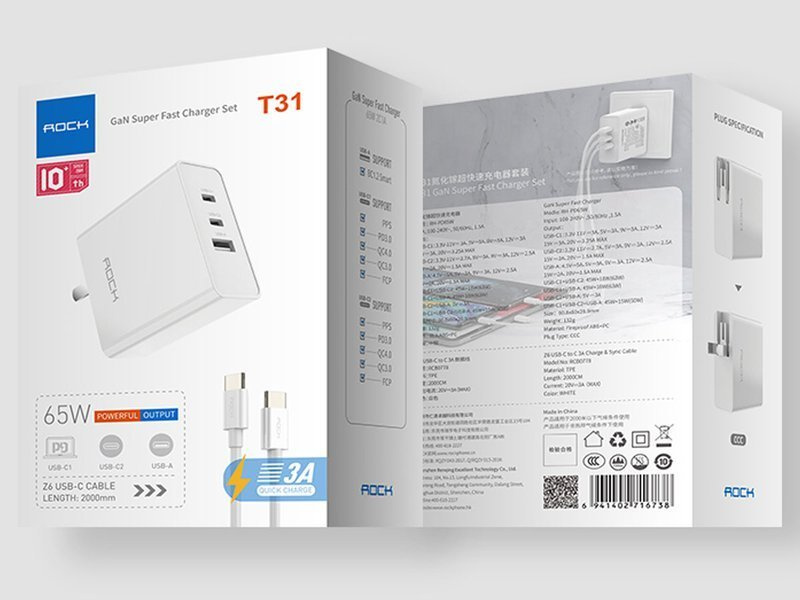 USB nástenná nabíjačka + 2x USB-C Rock Gan UE / USA + USB-C kábel typu C