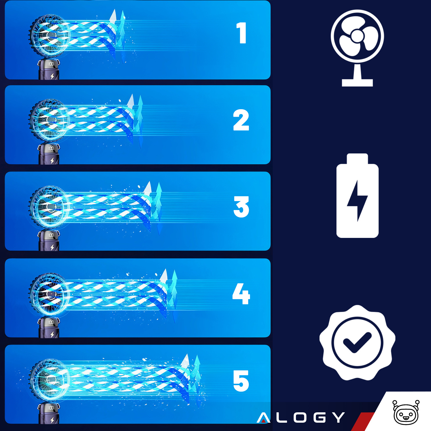 ✅ Náš mini ventilátor má až 5 úrovní rýchlosti fúkania. Rýchlosť prúdenia vzduchu si jednoducho a rýchlo nastavíte podľa svojich potrieb – stačí stlačiť tlačidlo na rukoväti.