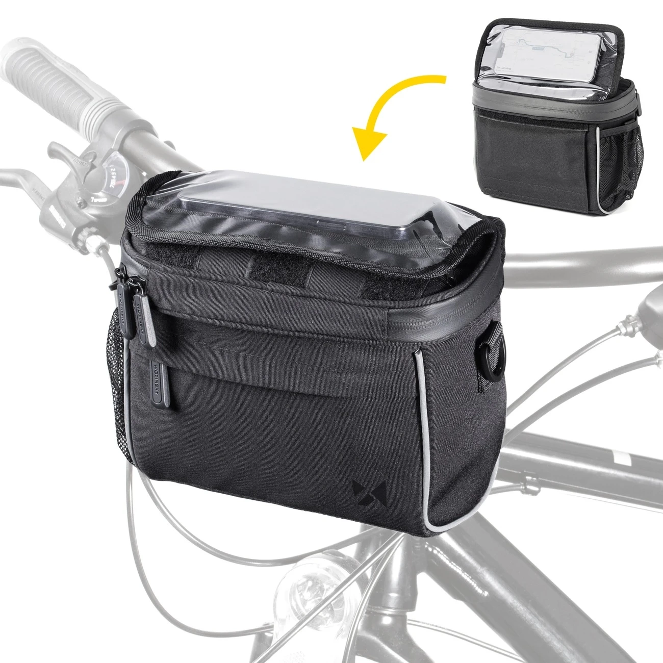 Hľadáte praktickú a odolnú tašku na bicykel na výlet do mesta? Zoznámte sa s Wozinsky WBHBB-01 - je to taška na bicykel na riadidlá a ... rameno! Má odnímateľný dlhý popruh a vrecko na telefón s priehľadným okienkom . Dôležité je, že vrecko sa dá nakloniť pod uhlom 90 stupňov pre bezpečnejšiu a ešte pohodlnejšiu navigáciu počas jazdy. Taška má kapacitu až 5 litrov a 4 rôzne vrecká pre lepšiu organizáciu . Pripevňuje sa k bicyklu pomocou pevného držiaka, ktorý je súčasťou súpravy.