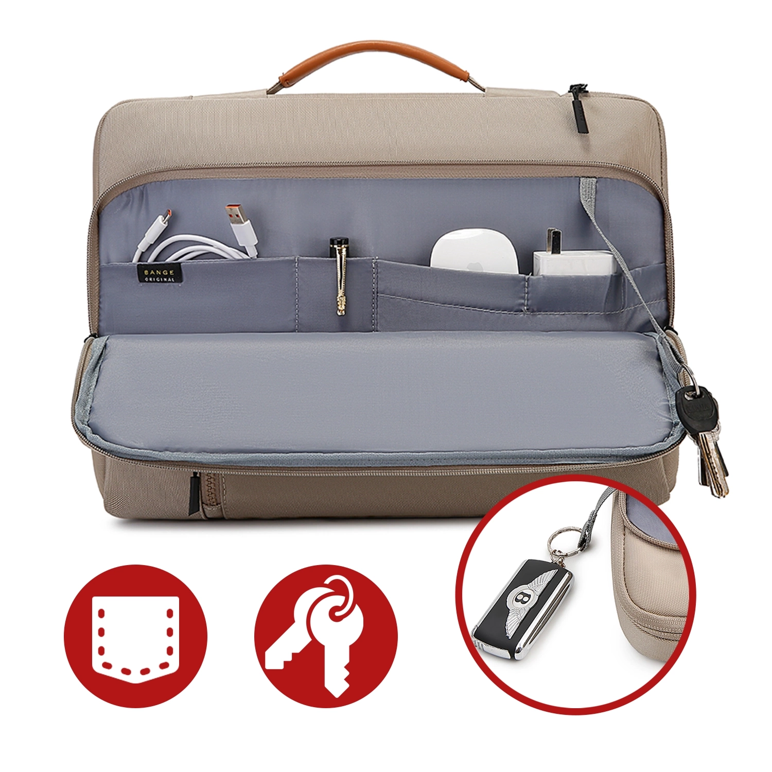 ▶️ Сумка для ноутбука 15,6 дюймів бежевого кольору, водонепроникна, Bange — завжди дбайте про безпеку свого обладнання!