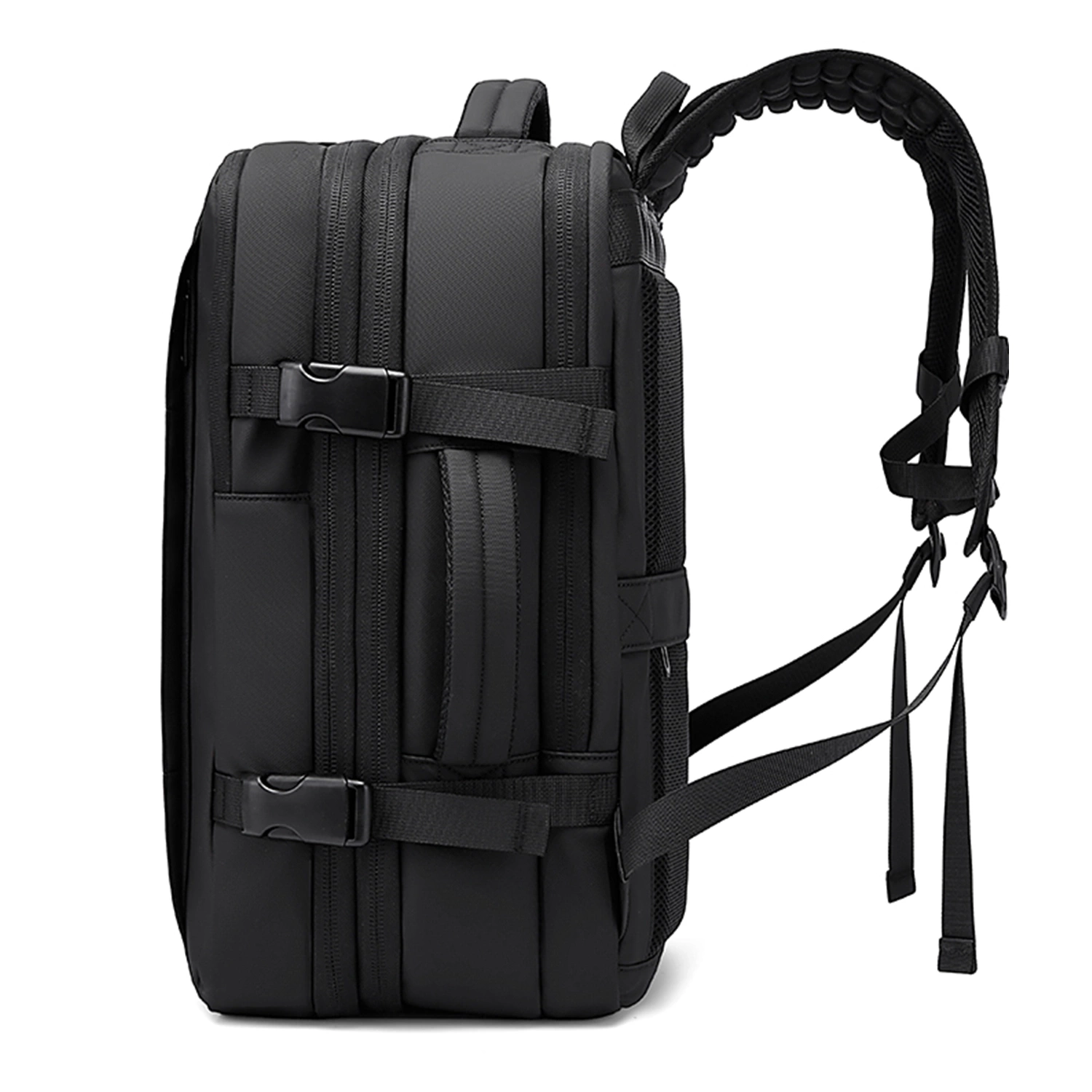 ✅ Основне відділення рюкзака – відкривається як валіза, оснащене відділенням для вакуумного пакування (у комплект входить електричний вакуумний насос) та двома водонепроникними кишенями на блискавці, які ідеально підходять для зберігання косметики.