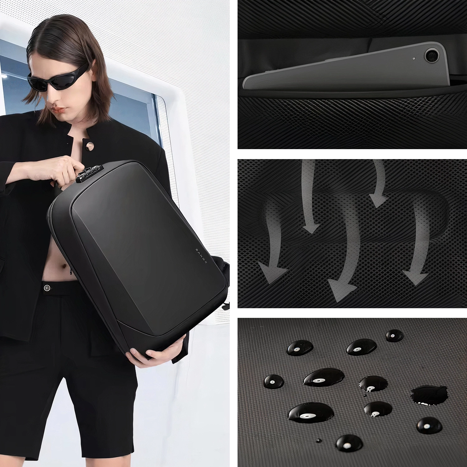 • Протиугінний рюкзак Bange 15,6" поєднує в собі водонепроникність і функціональність. Він пропонує ємність до 18 літрів, регульовані плечові ремені та міцні замки TSA. У ньому можна помістити ноутбук до 15,6" і повсякденні аксесуари. Ідеально підходить для