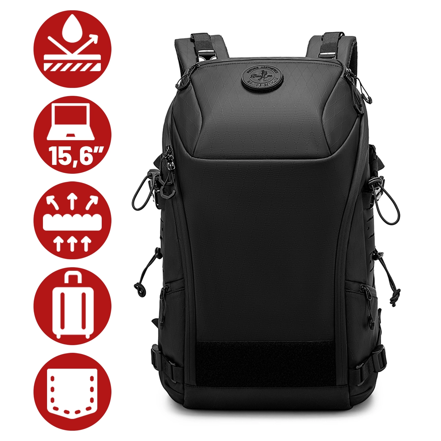 ✅ На спинці є петля для візка, прихована кишеня та грудний ремінь із затискачем для фіксації плечових ременів. З боків є практичні кишені на блискавці . Передня частина рюкзака має дві кишені на блискавці, одна з яких приховує додаткову внутрішню сітчасту кишеню на блискавці. Основне відділення містить практичні кишені, зокрема відділення для ноутбука з ремінцем та відділення для планшета , що забезпечує повний контроль над вашим спорядженням.