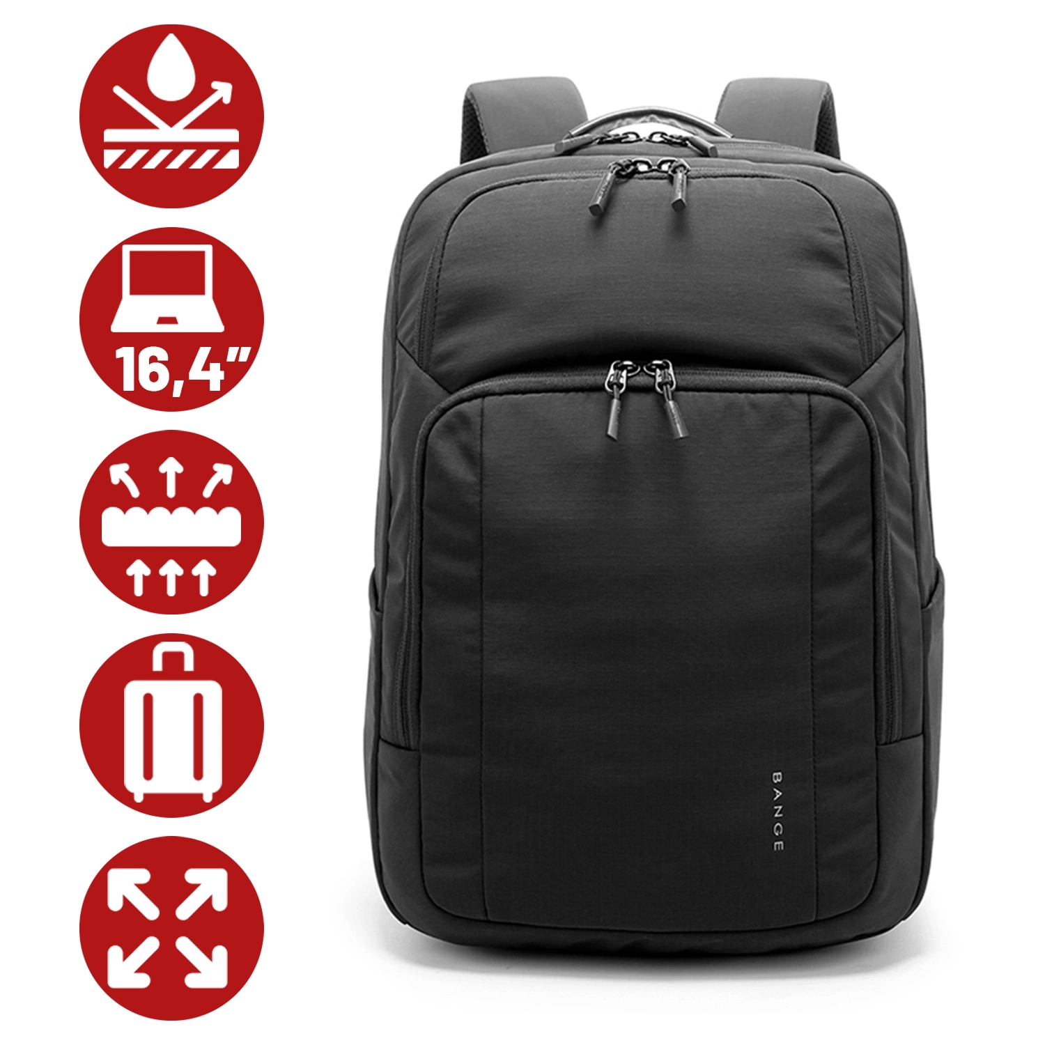 • Водонепроникний рюкзак Bange — це функціональна модель для роботи, подорожей та щоденних прогулянок. Оснащений ремінцем для валізи, прихованою кишенею для документів, петлею для окулярів та багатофункціональними кишенями, він забезпечує комфорт та організ
