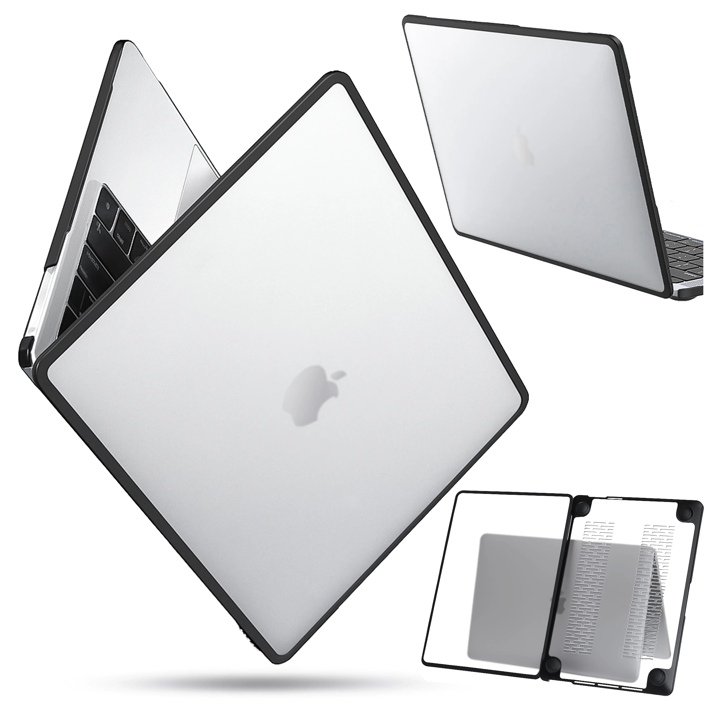 ✅ Двосекційна конструкція захищає верхню та нижню частини вашого MacBook, а гнучка чорна рамка з ТПУ поглинає кожен удар . Матовий, напівпрозорий чохол ледь помітно пропускає світло логотипу Apple, зберігаючи елегантність пристрою. Нековзні ніжки та ребриста вентиляція забезпечують стабільність та охолодження. Цей чохол не просто чудово виглядає — він справді захищає ваш MacBook від щоденного зносу .