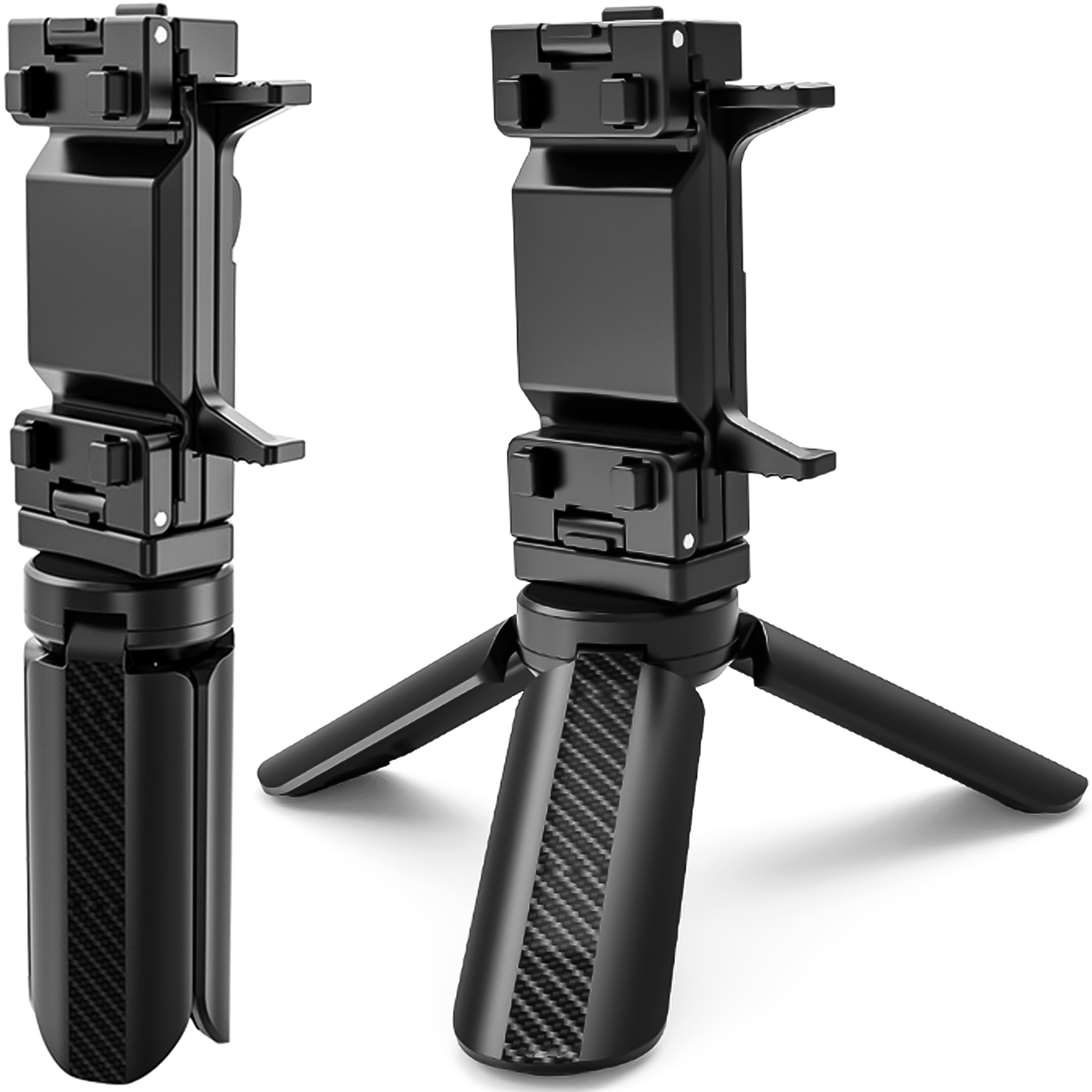 Штатив і ручка пристосовані для кріплення на 1/4 дюйма , тому ми можемо від'єднати їх один від одного та використовувати, наприклад, для кріплення камер, камер GoPro або прикріпити їх до великого фотоштативу.