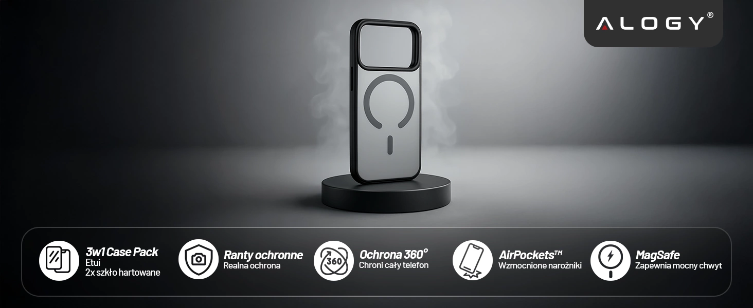 ✅ Уявіть собі свій новий iPhone 17 Pro Max миттєво у ваших руках, повністю захищений – без захисної плівки для екрану, без стресу, готовий до використання. Комплект Alogy 3-в-1 поєднує гібридний чохол MagSafe із захисною плівкою для об’єктива та 2 захисні плівки для екрану із загартованого скла Heavy Pro™ , тому одна покупка гарантує захист на місяці вперед.