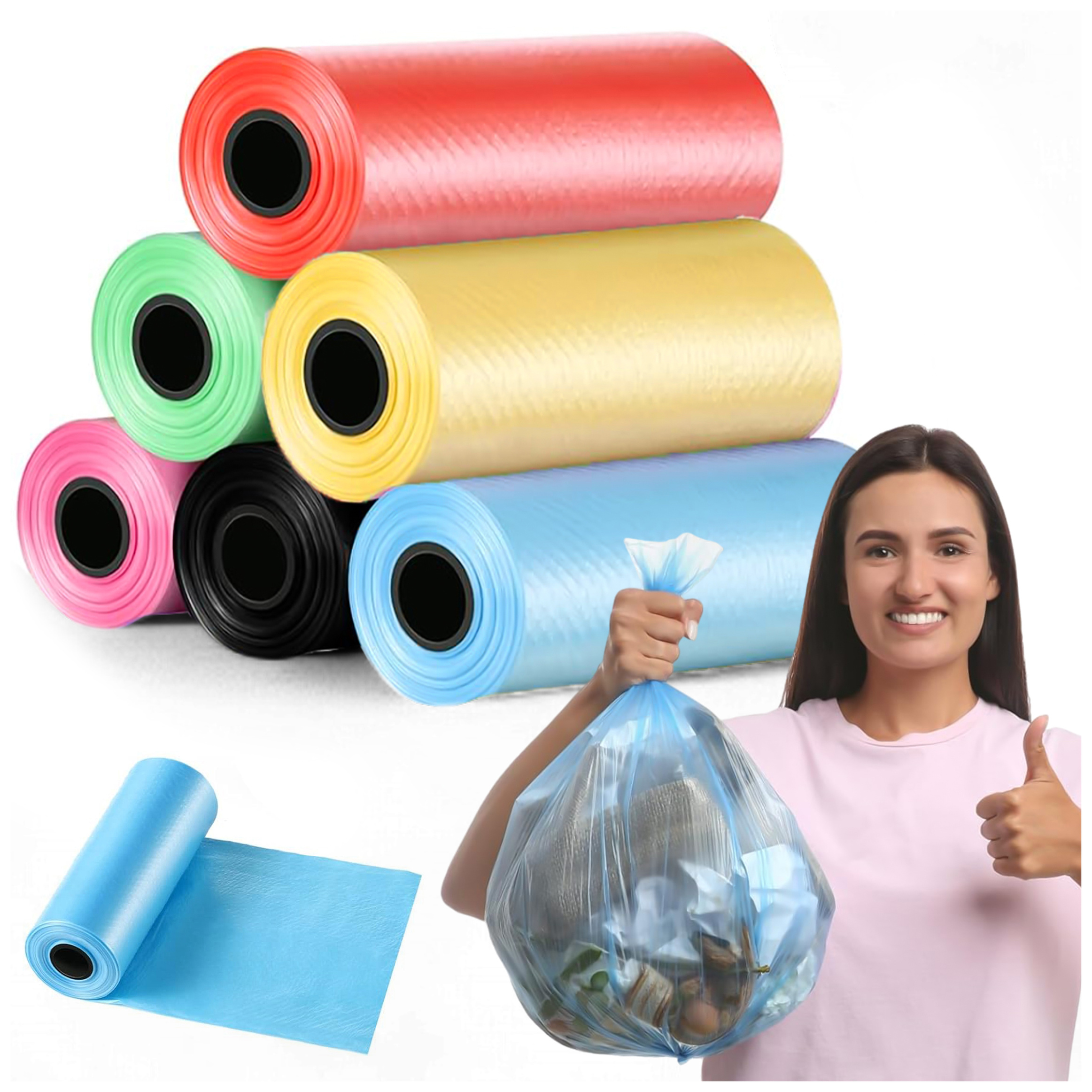 ✅ У набір входить 6 рулонів, кожен з яких містить 15 мішків у різних, випадково надісланих кольорах , що приносить радість у повсякденних справах.