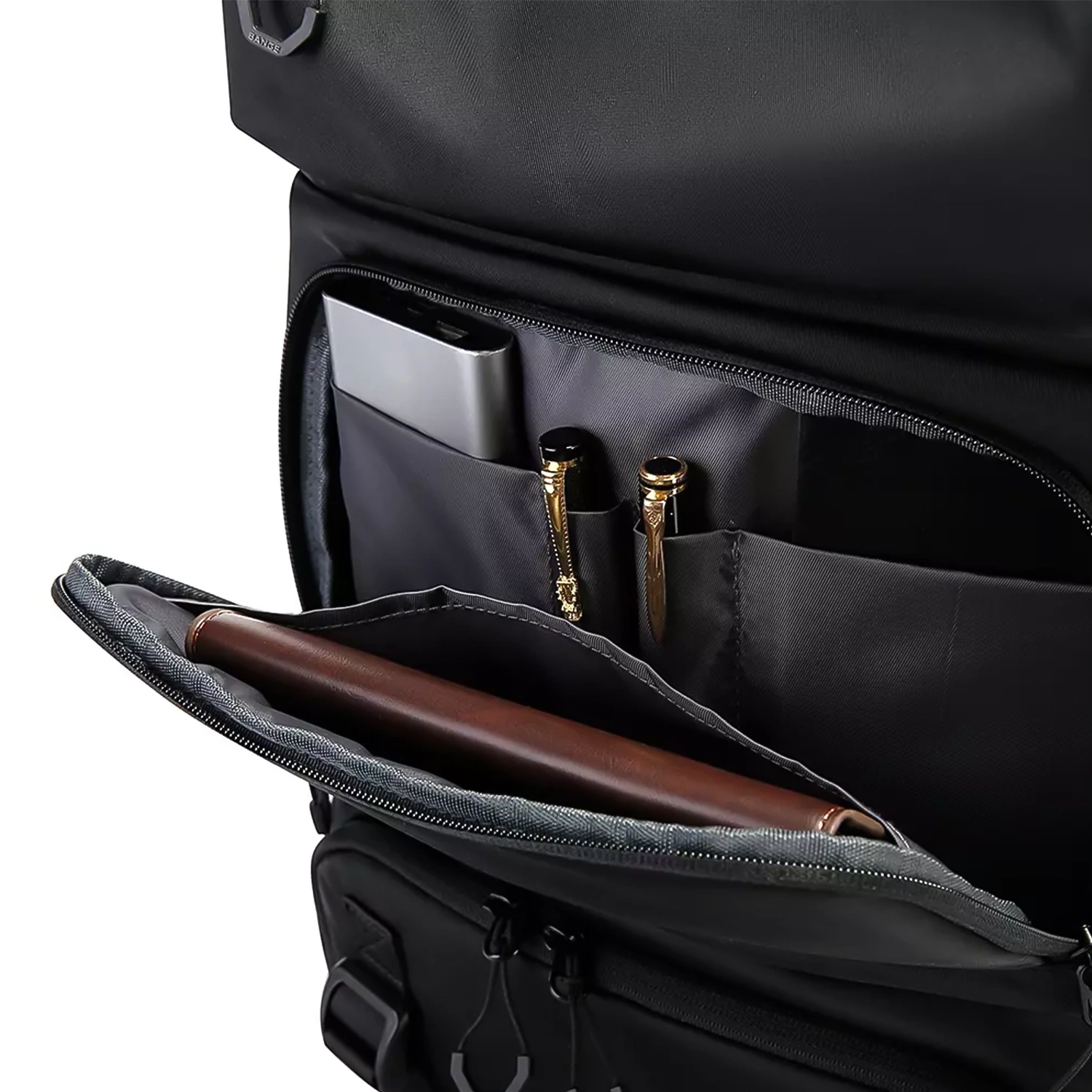 ✅ Рюкзак має ремінь , який дозволяє прикріпити його до ручки валізи . Це робить подорожі з рюкзаком зручнішими, оскільки ви можете легко прикріпити його до ручки валізи та легко пересуватися аеропортами чи залізничними вокзалами. Це дуже функціональна функція, яка додає універсальності рюкзаку , особливо під час ділових поїздок.