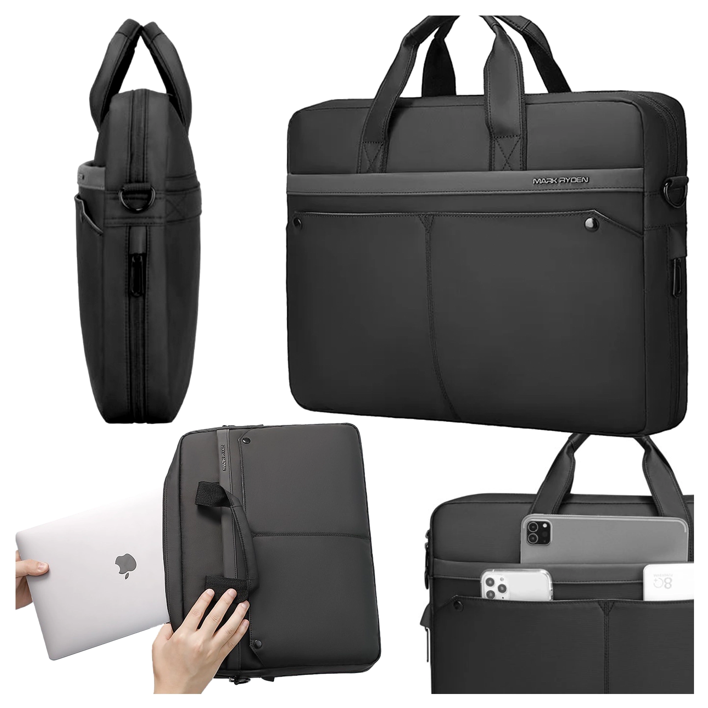 • Сумка Mark Ryden — це стильний та легкий дизайн для ноутбуків діагоналлю до 14 дюймів. Вона пропонує водонепроникний захист, розширюваний обсяг та ремінь для валізи, поєднуючи діловий стиль із практичною функціональністю.