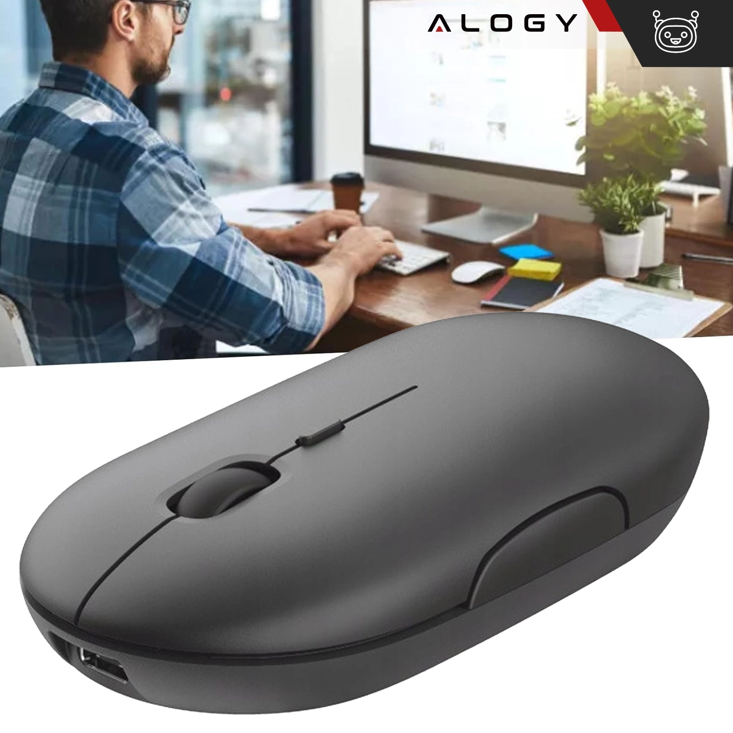 Alogy wireless mouse small ergonomic mouse for laptop PC bluetooth 2.4GHz silent black