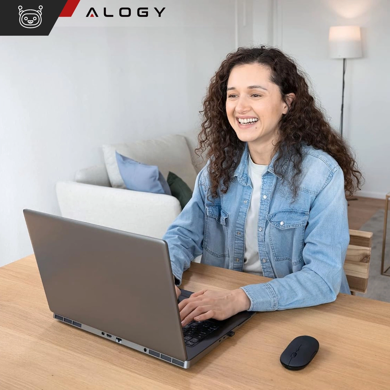 ✅ Бездротова миша Alogy поєднує в собі елегантність і функціональність . Його тонкий силует і естетична обробка роблять його приємним у використанні, і в той же час він не займає багато місця в дорожній сумці.
