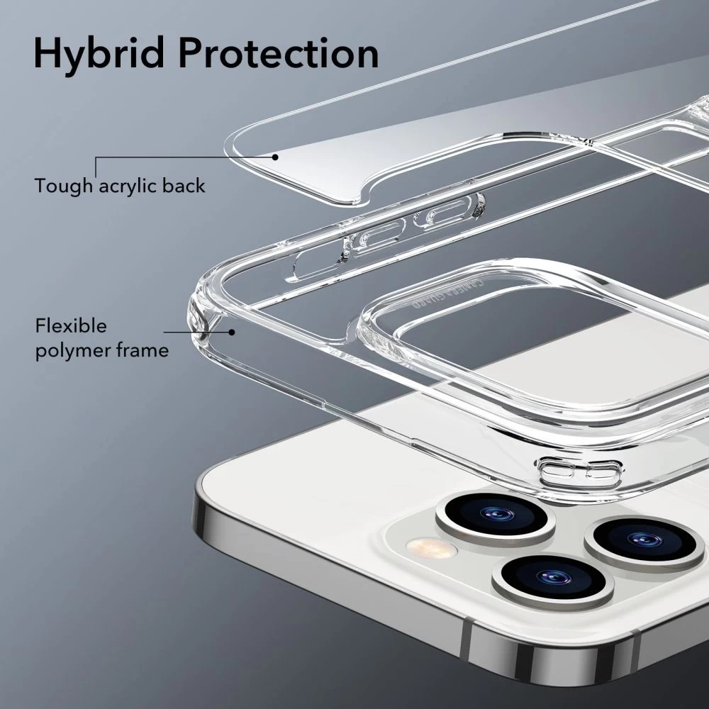 Делікатний, легкий і тонкий футляр призначений для щоденного захисту від подряпин і падінь. Корпус виготовлений з твердого акрилу та гнучкого та ударопоглинаючого матеріалу TPU, завдяки чому він має захисні властивості та покращує захоплення пристрою в руці.