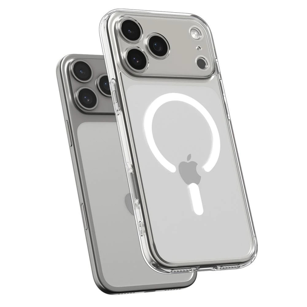 Spigen Ultra Hybrid Mag MagSafe do iPhone 17 Pro w wersji Clear/White to eleganckie etui, które podkreśla naturalny wygląd telefonu, a jednocześnie chroni go przed codziennymi zagrożeniami. Transparentne plecki i białe akcenty nadają całości nowoczesnego, stylowego charakteru.