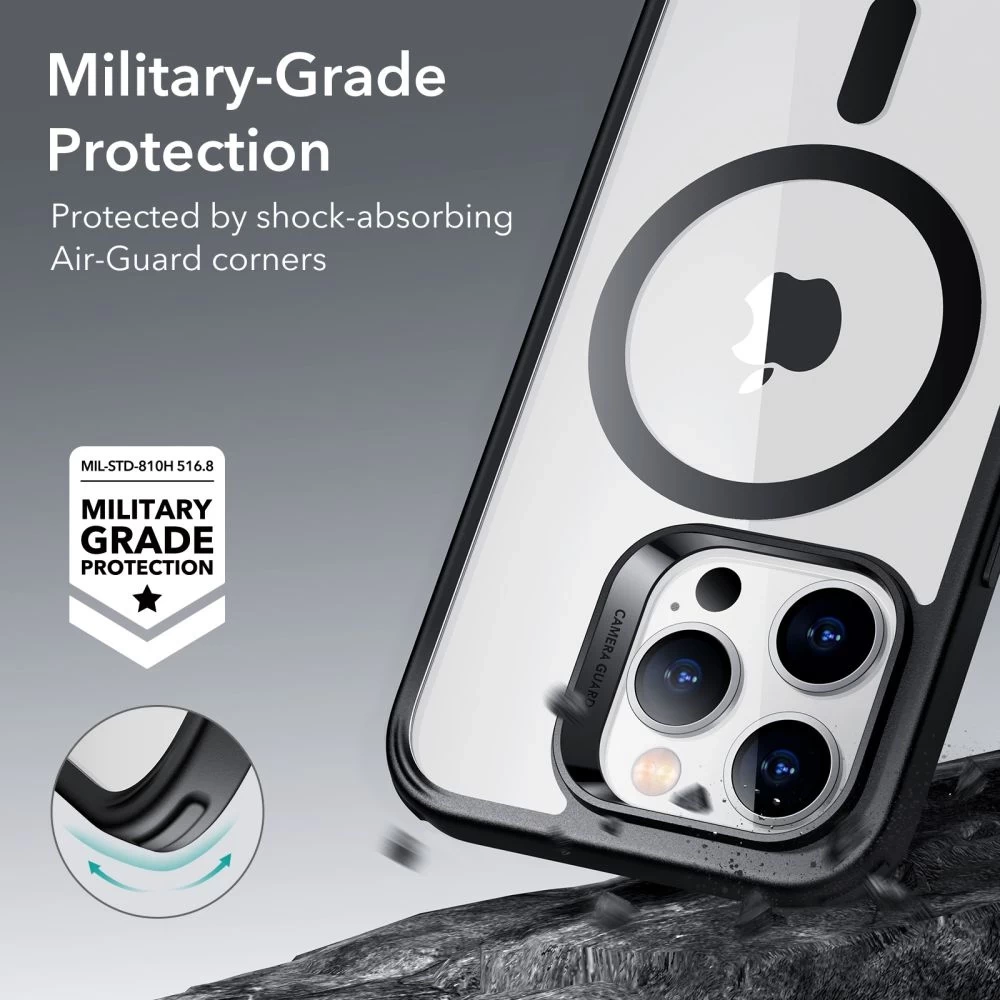 • Чохол ESR CH HaloLock Magsafe для Apple iPhone 14 Pro Max - це цільний чохол, який складається з прозорого полікарбонатного шару, який обертається навколо країв і задньої панелі телефону, і міцної м'якої рамки навколо нього.