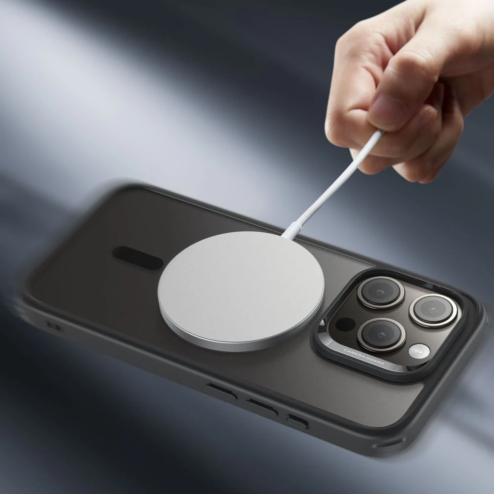 Чохол оснащений кільцем, сумісним з бездротовою технологією MagSafe.