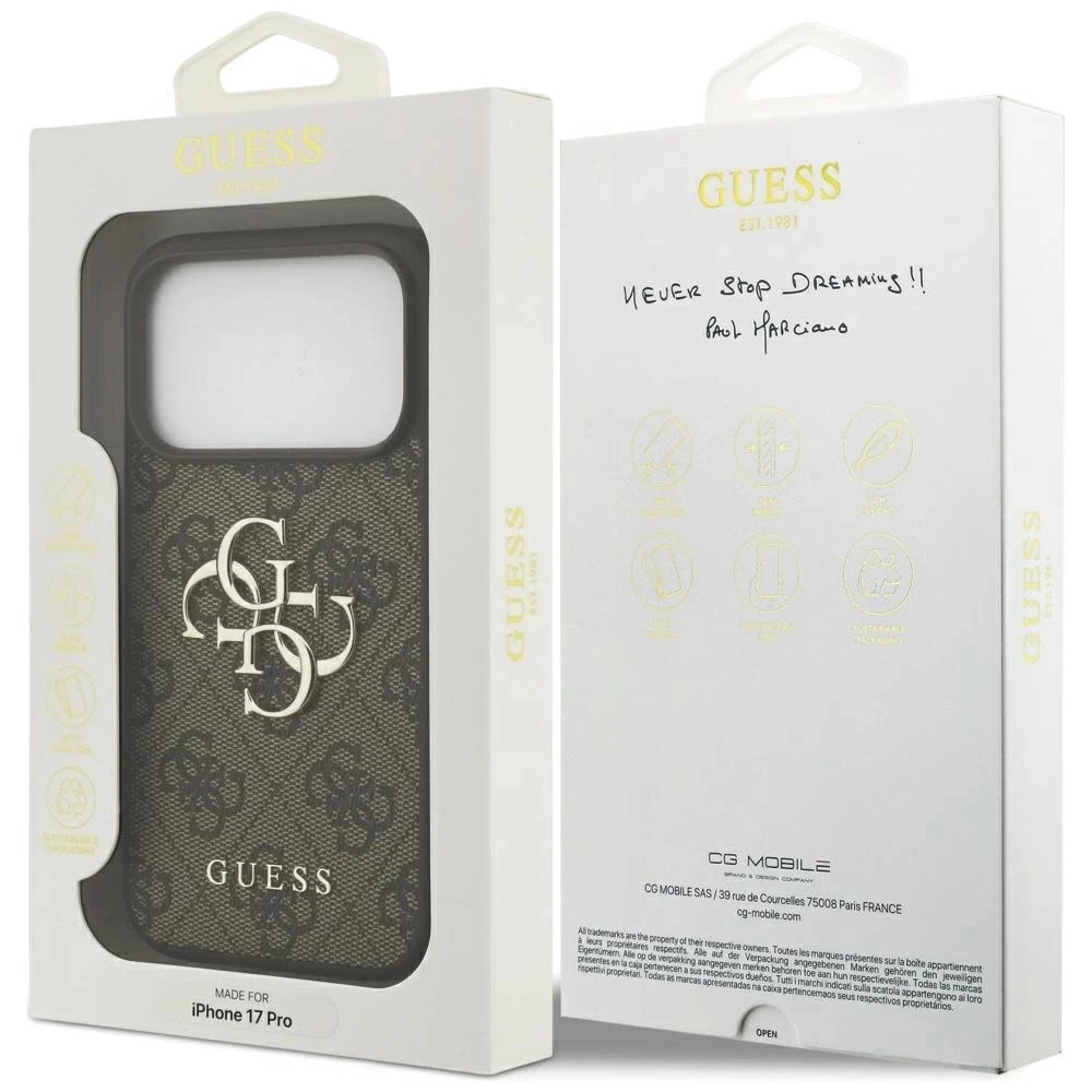 Etui Guess Hardcase 4G Big Metal Logo do iPhone 17 Pro to propozycja dla osób, które chcą połączyć klasyczny design z solidną ochroną. Wyprodukowane przez CG Mobile na oficjalnej licencji Guess, zachwyca modnym wyglądem i dbałością o szczegóły.