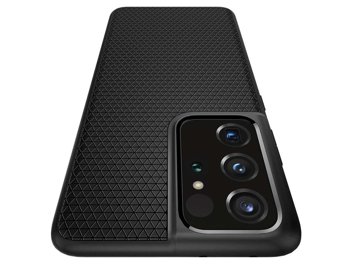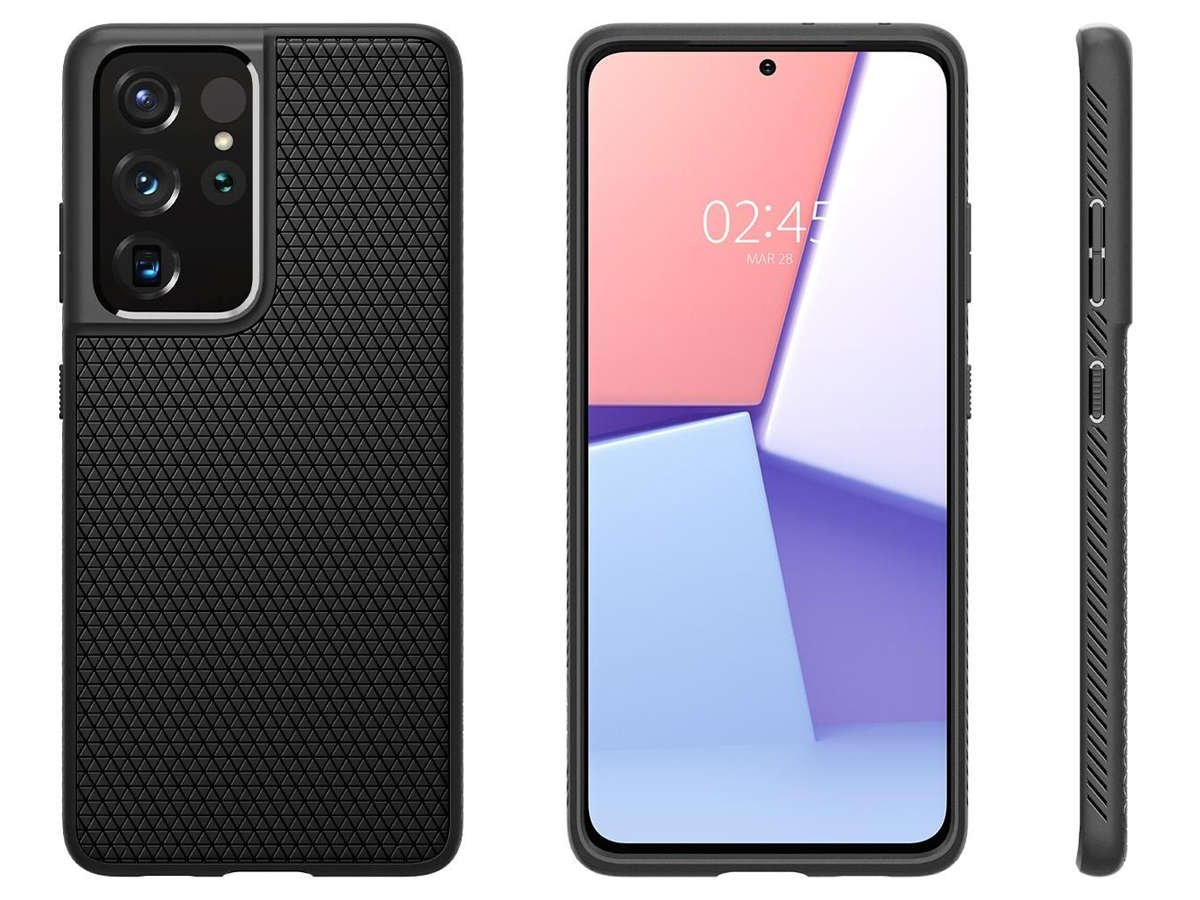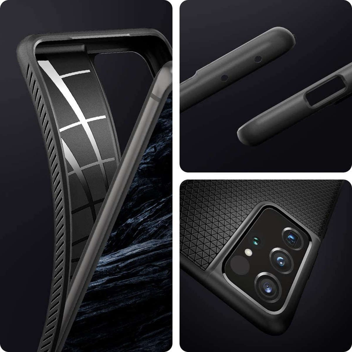 Чохол для телефону Spigen серії Liquid Air — продукт, розроблений спеціально для Samsung Galaxy S21 Ultra. Він виготовлений з високоякісного гнучкого поліуретану (TPU), який завдяки своїм властивостям адаптується до пристрою, мінімізуючи можливість його ковзання та не збільшуючи істотно його розмір. Чохол Liquid Air захищає телефон від пошкоджень внаслідок падіння із середньої висоти, поглинаючи силу удару.