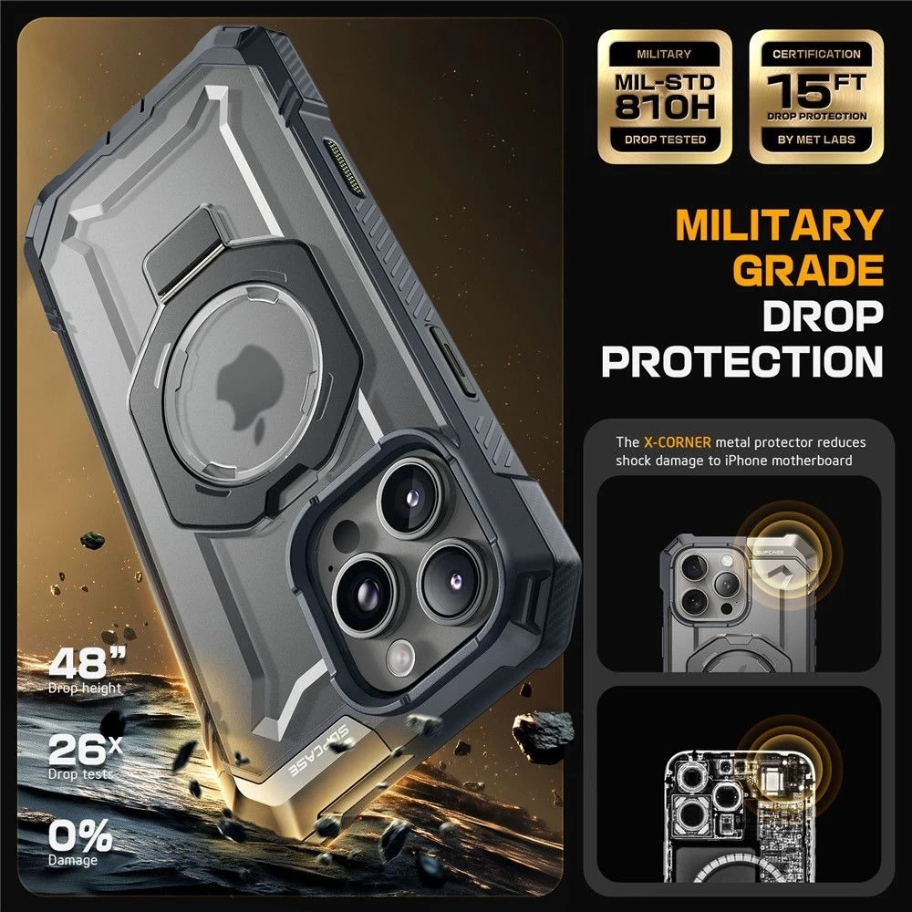• Чохол Supcase UB Grip Mag Magsafe для iPhone 16 Pro Max - це міцний чохол з матеріалу TPU, який захищає від падінь (MIL-STD 810G). Прозора задня панель і кільце MagSafe забезпечують швидку зарядку та функцію підставки.