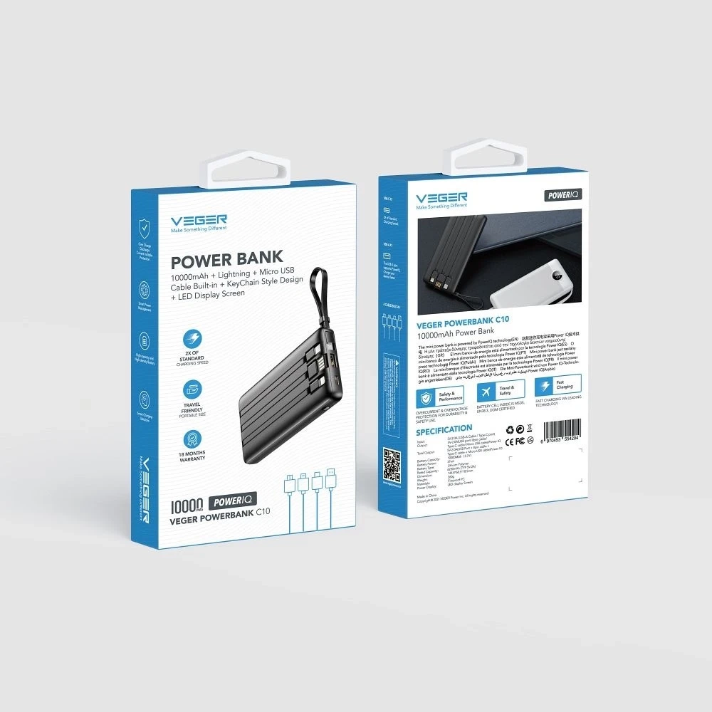Повербанк Veger C10 ємністю 10 000 мАг — гарантія швидкої зарядки будь-де та будь-коли.